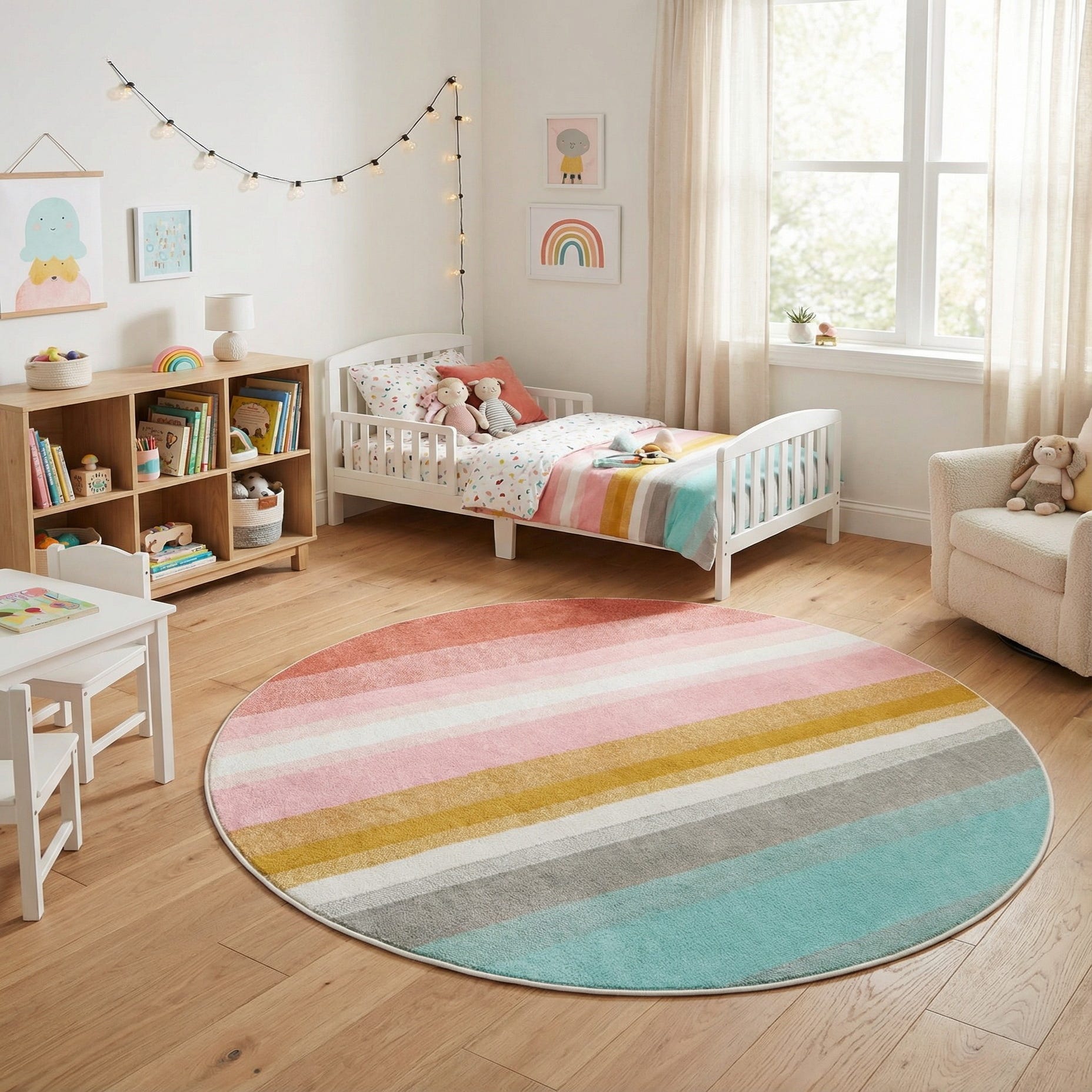 6' 1 x 6' 1 Rainbow Stripes Whimsy Kids Round Rug