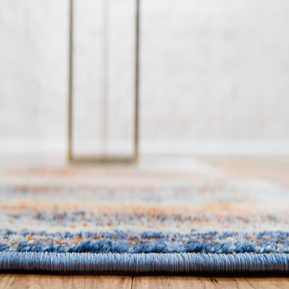 The rug adds color without calling attention to itself. The pattern is subtle not boring. I'm put a matching one in the dining room to pull things together - the variations in color due to the pile make them seem to be two different rugs. The rugs arrive folded but work themselves back to flat quickly. Heavy books on the corners help. I would buy them again in a heartbeat.