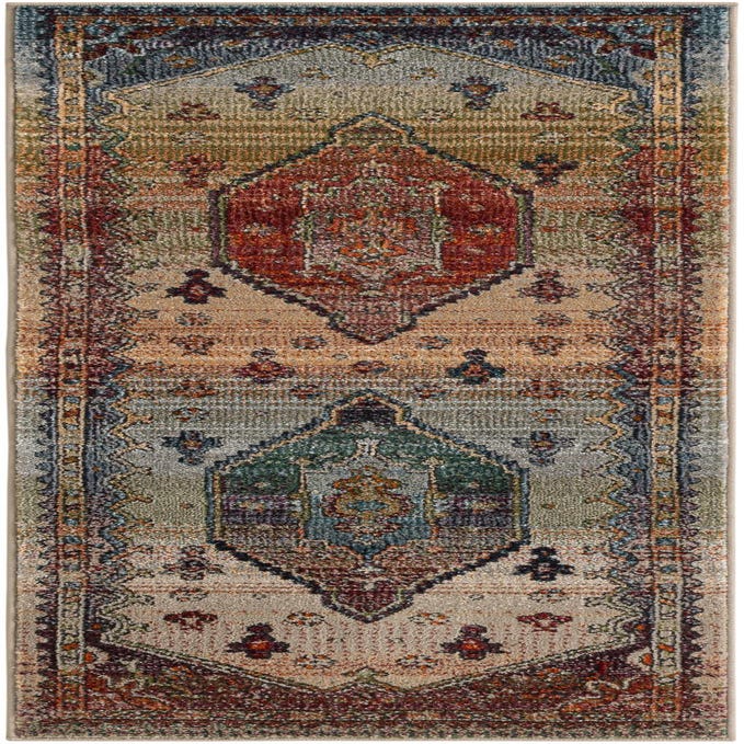 Primary color is Multi. Colors in this rug include: Multi, Beige, Blue, Green, Ivory, Light Blue, Light Green, Navy Blue, Orange, Peach, Plum Red, Red.