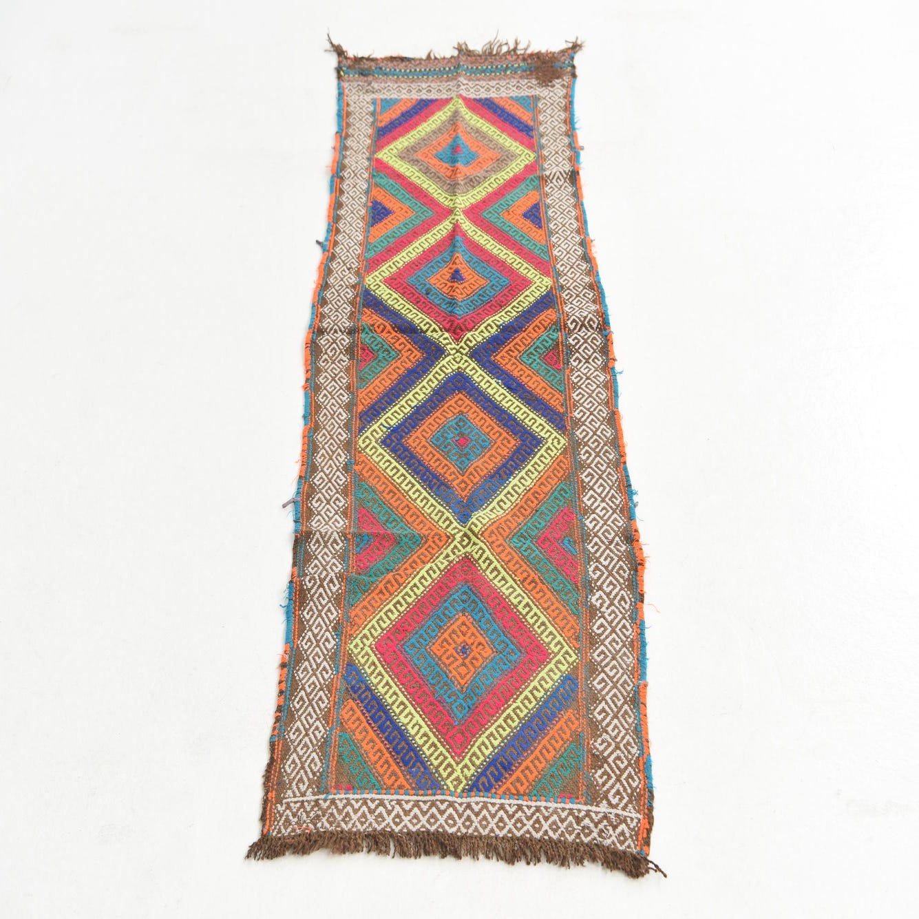 Hand-knotted from 100% wool, the runner has a dense, tactile surface that holds sharp pattern definition and feels sturdy underfoot. Use it to animate a hallway or entryway, layer it along a narrow kitchen corridor, or place it in front of a console table to introduce color and directional movement. It pairs well with warm wood floors and leather seating, woven or rattan accents, and neutral upholstery, making it a good choice for eclectic, global-inspired, or mid-century modern interiors that benefit from a richly patterned focal piece.