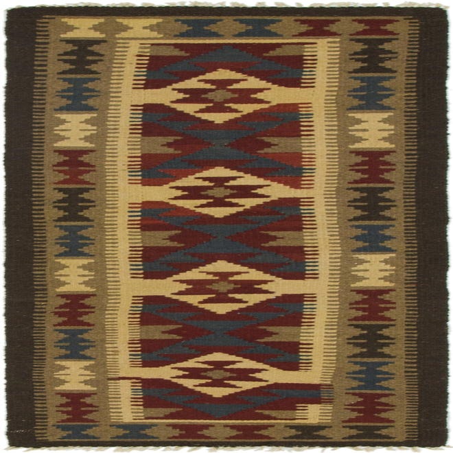 Primary color is Multi. Colors in this rug include: Multi, Brown, Blue, Burgundy, Ivory, Light Brown.