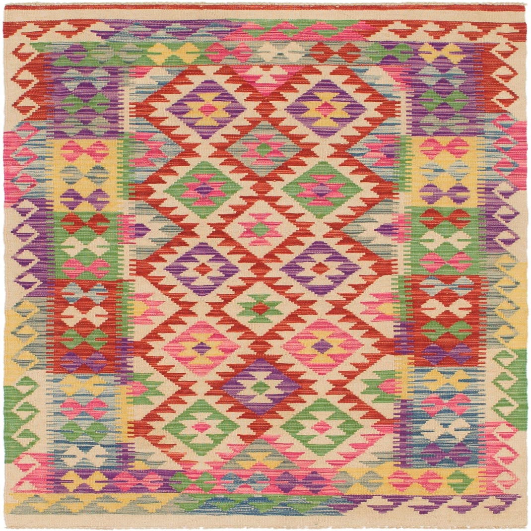 3' 4 x 6' 3 Hand Woven Kilim Maymana Wool Runner Rug