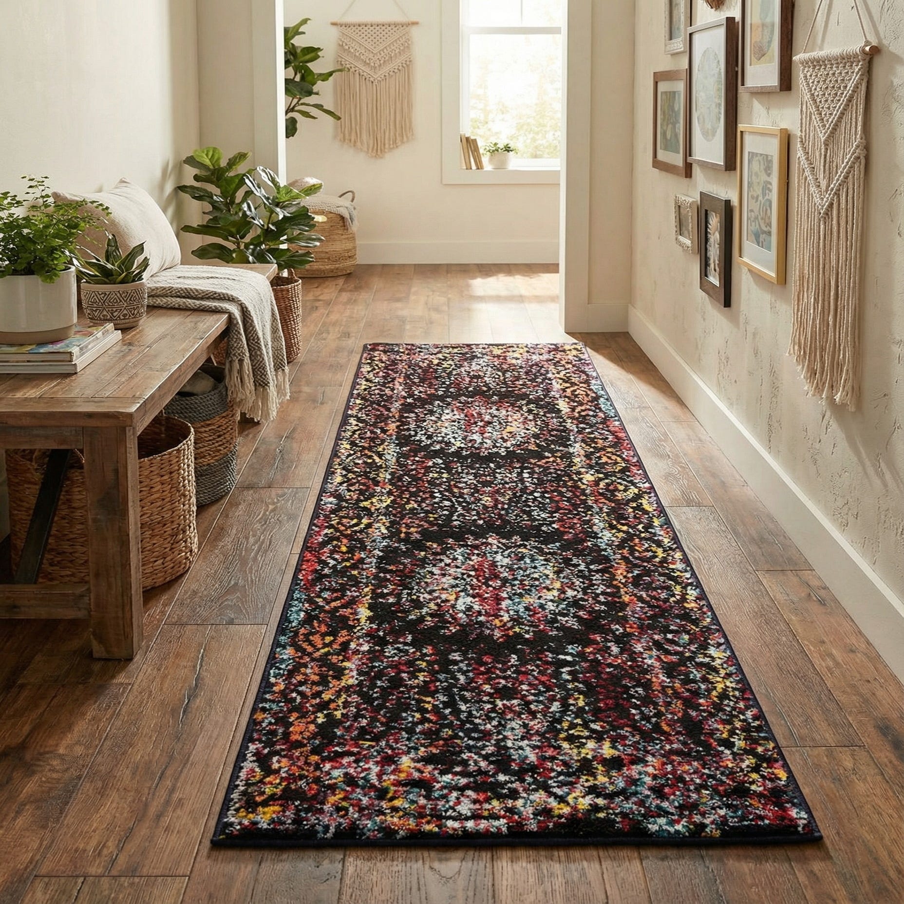 Primary color is Multi. Colors in this rug include: Multi, Blue, Ivory, Light Blue, Navy Blue, Teal, Red, Yellow, Pink, Purple, Orange.