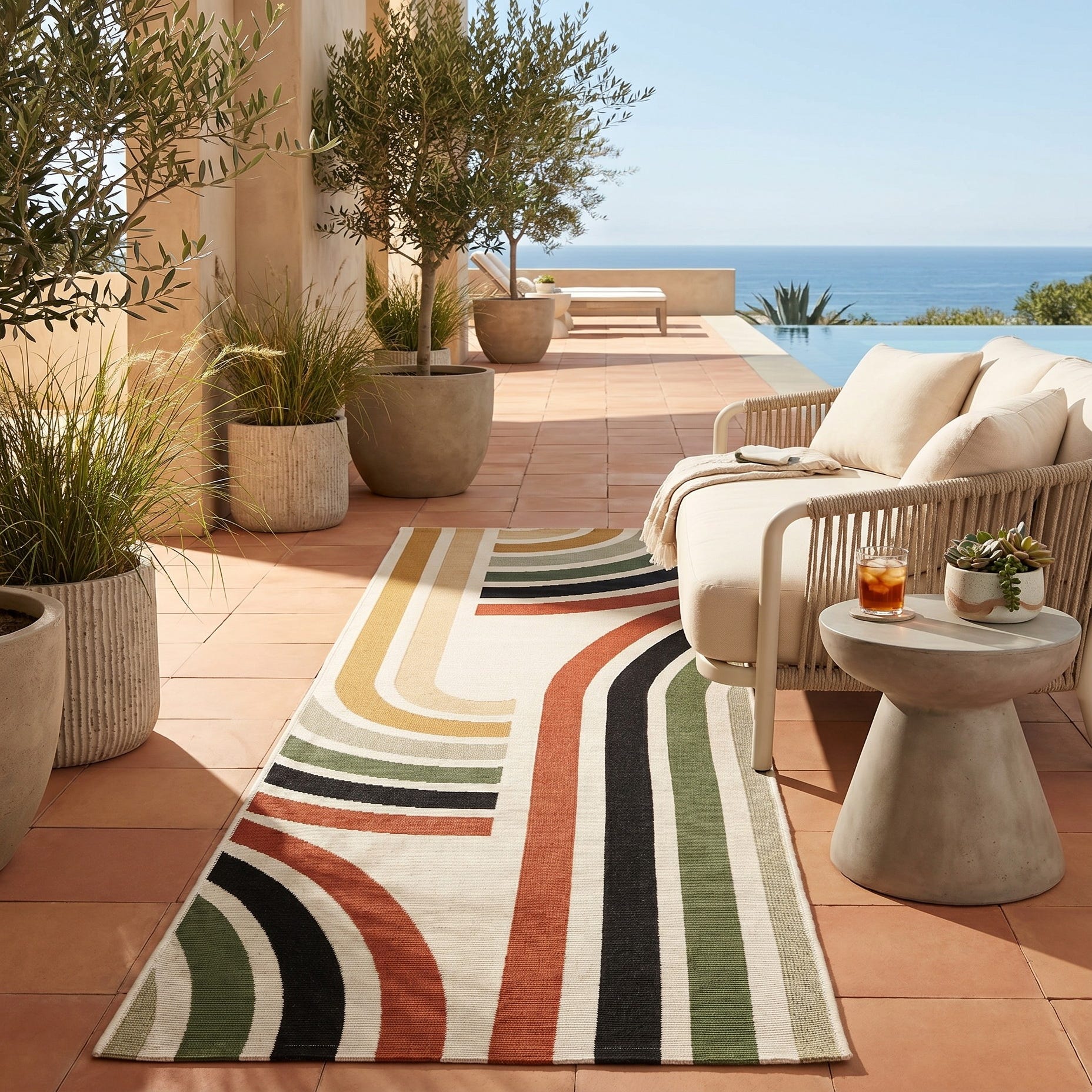 This rug just pops on our patio. Sizing, color match and timely delivery. Thanks