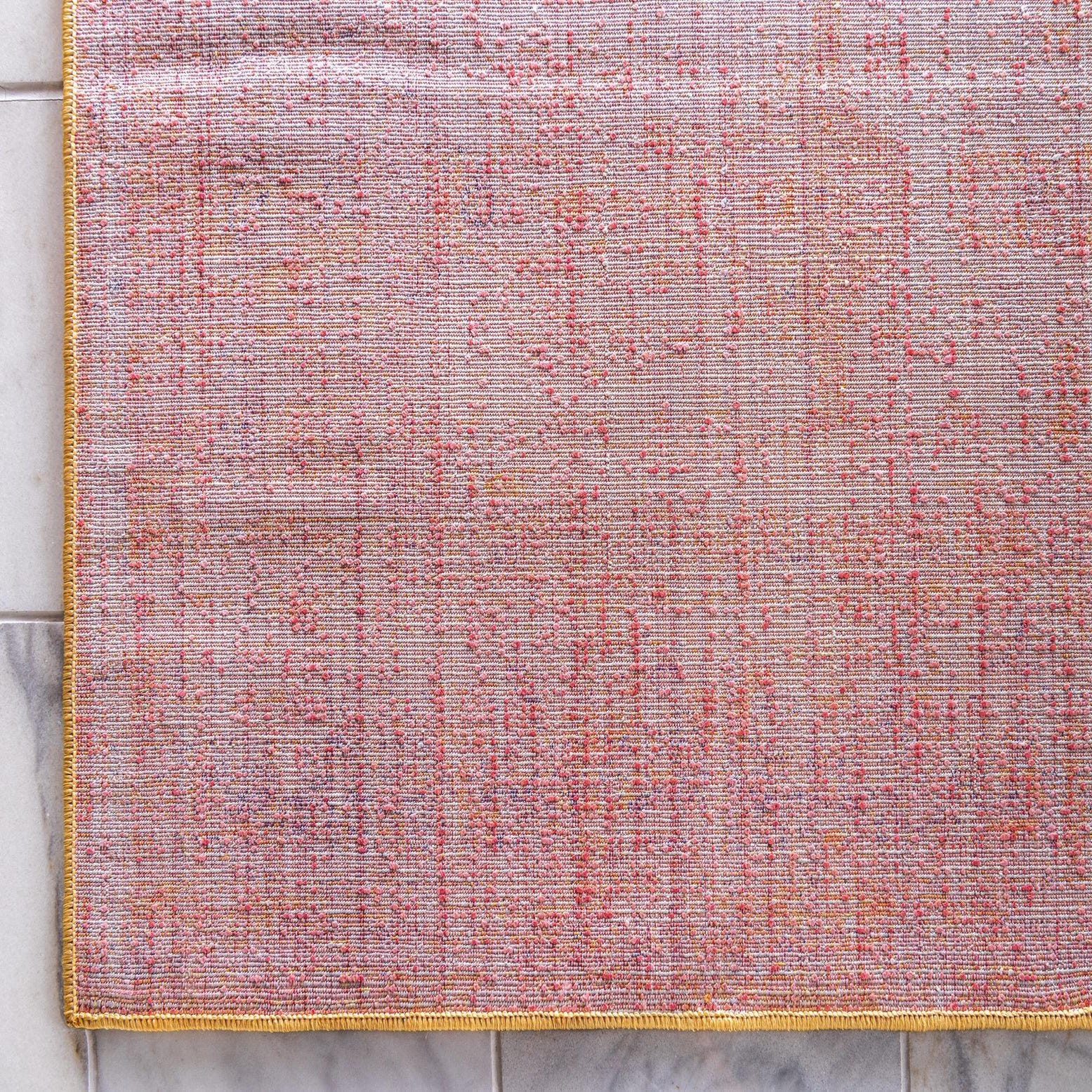 A machine-made runner crafted from 100% polypropylene (space-dyed yarn), this rug presents a softly distressed, vintage-inspired medallion and border motif layered over a multi background. Warm orange and gold washes mingle with beige fields, while navy blue and burgundy accents punctuate the design, creating a painterly, lived-in look. The space-dyed yarn gives subtle tonal variation across the surface, so tiny flecks of color read like brushstrokes rather than solid blocks. Underfoot the low-to-medium pile feels smooth and slightly plush, offering a comfortable, grounded texture without heavy pile height.