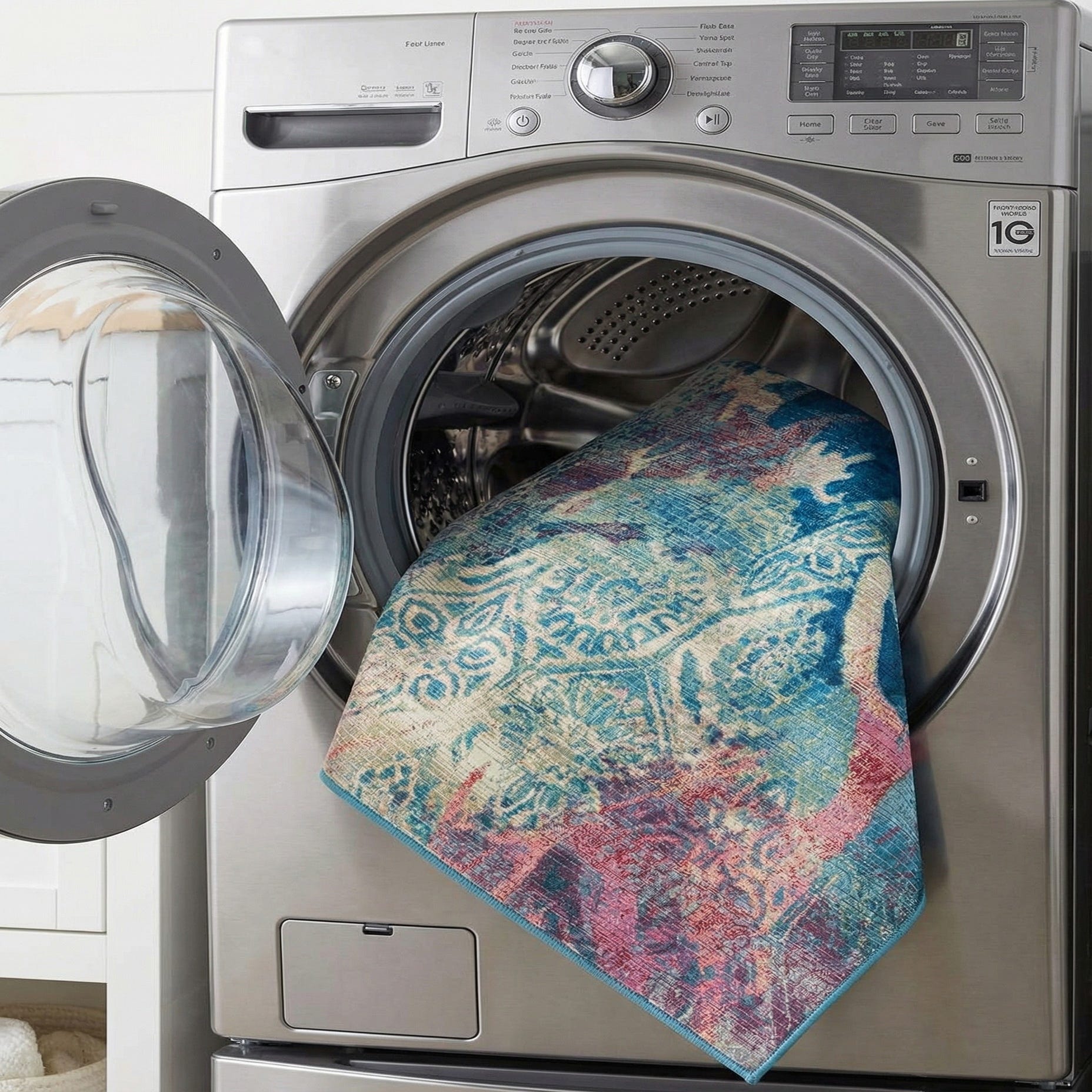 Primary color is Multi. Colors in this rug include: Multi, Beige, Ivory, Light Blue, Navy Blue, Pink.
