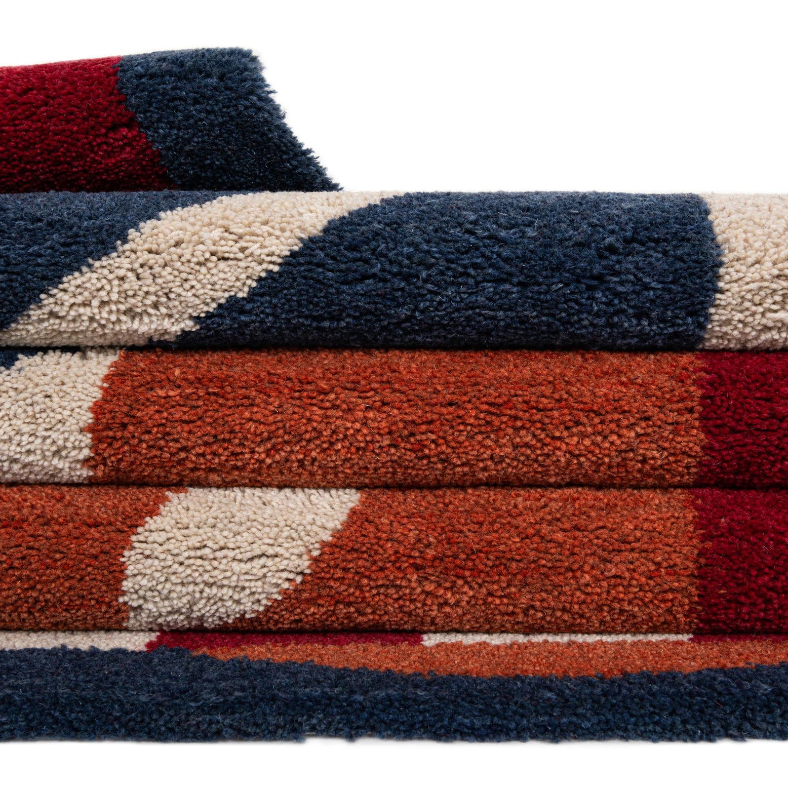 Primary color is Multi. Colors in this rug include: Multi, Beige, Navy Blue, Red, Rust Red.