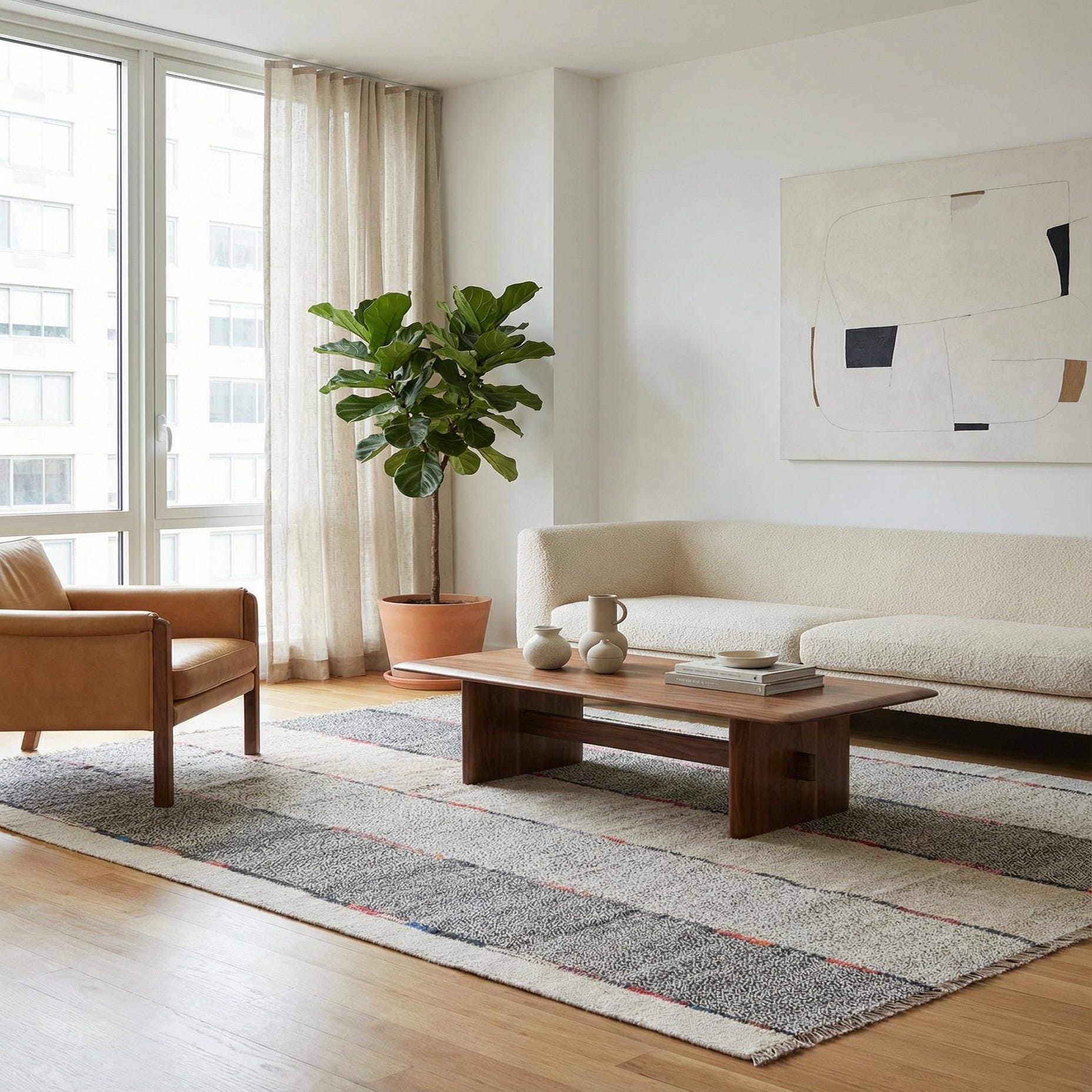 This versatile rug harmonizes well with a variety of decor styles ranging from modern and minimalist interiors, where it can serve as a grounding element, to more eclectic spaces where it can complement existing color schemes and textures. Its neutral tones make it an adaptable addition to a living room, dining area, or bedroom, integrating seamlessly with both vibrant and understated palettes.
