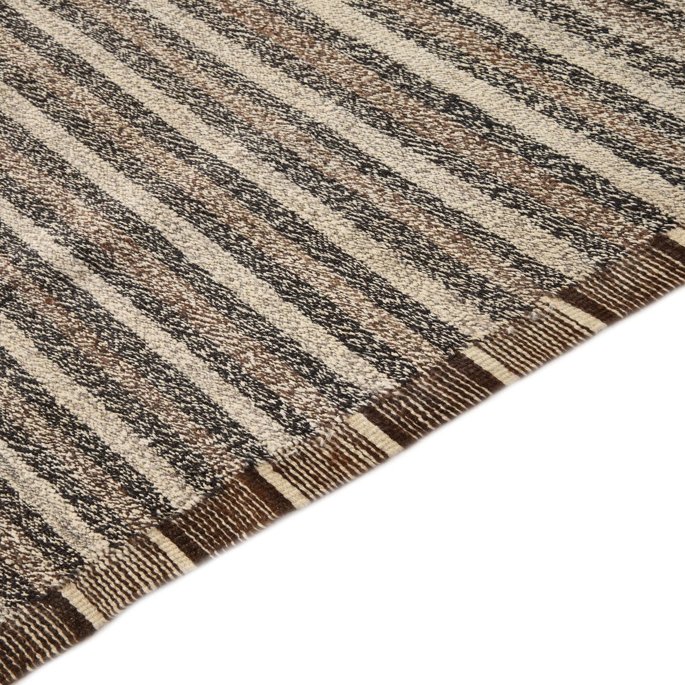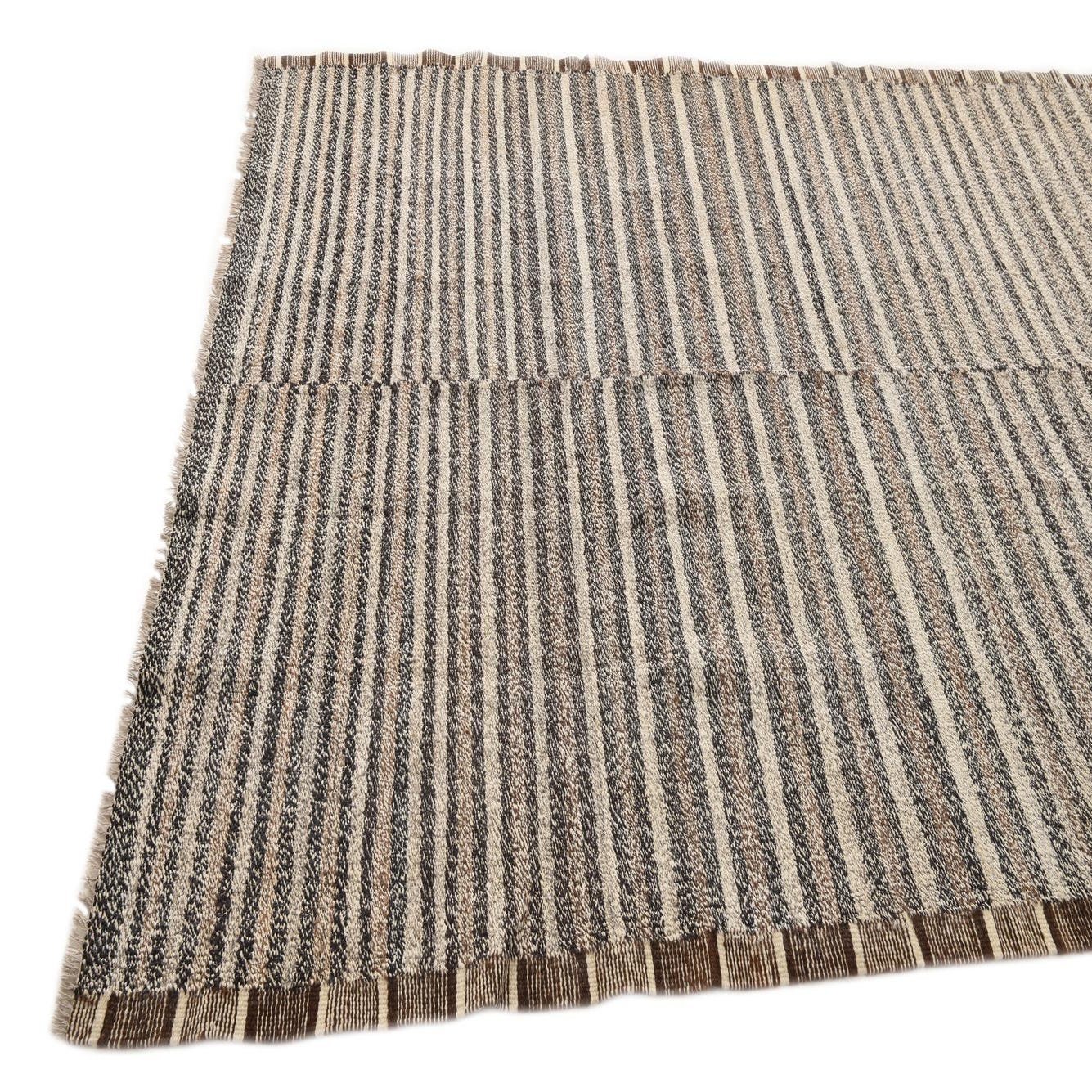 Ideal for spaces that lean towards modern, minimalist, or even Scandinavian-inspired design, this handwoven wool rug is well-suited to anchor living rooms, home offices, or dining areas. Its neutral yet rich color scheme allows it to blend seamlessly with natural wood finishes, sleek furniture designs, and a variety of textiles, making it an adaptable choice for those looking to create a cohesive yet stylish interior.