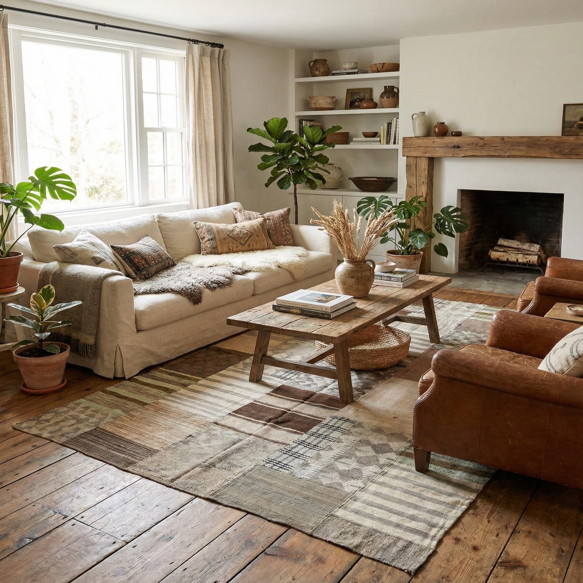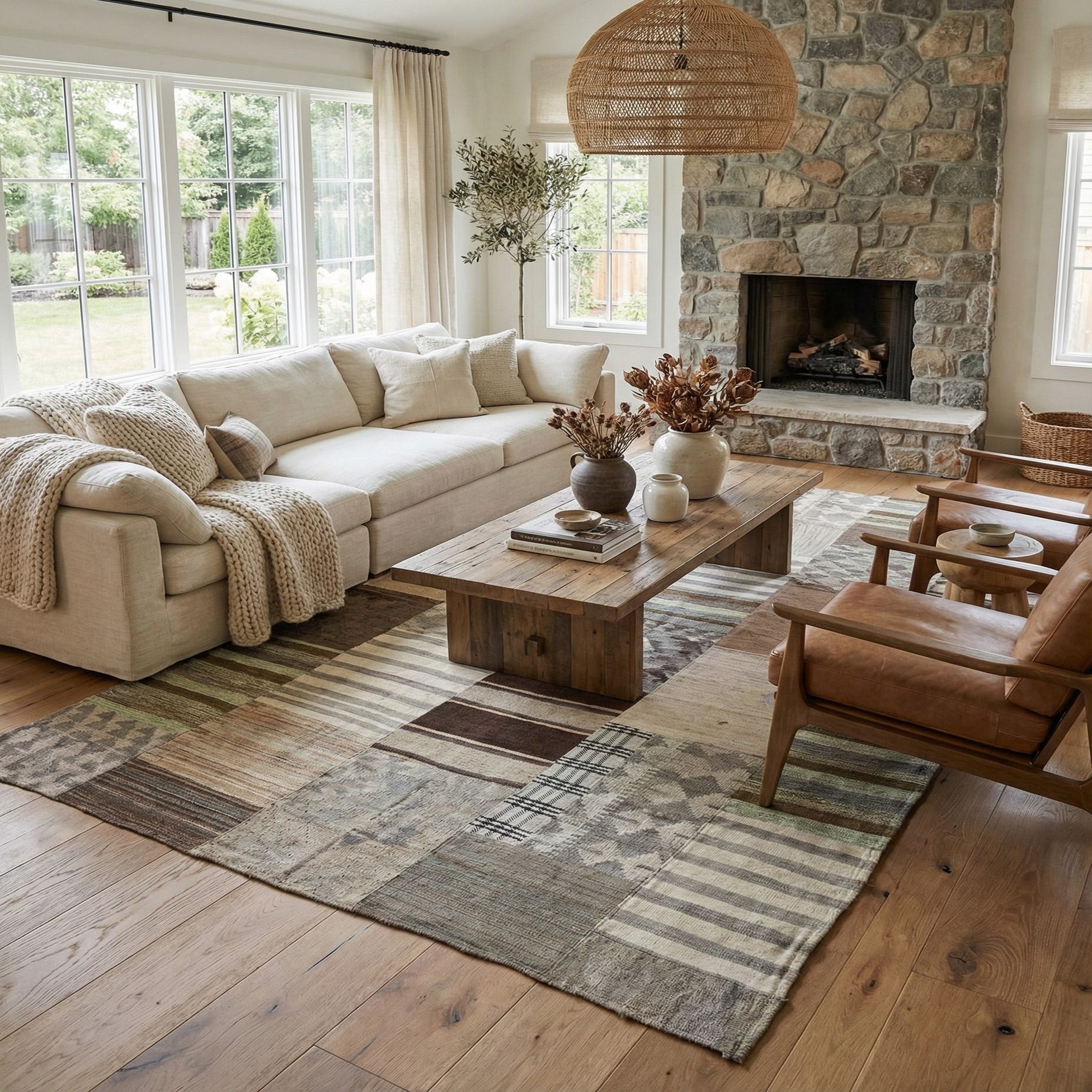 Primary color is Multi. Colors in this rug include: Multi, Beige, Black, Brown, Green.