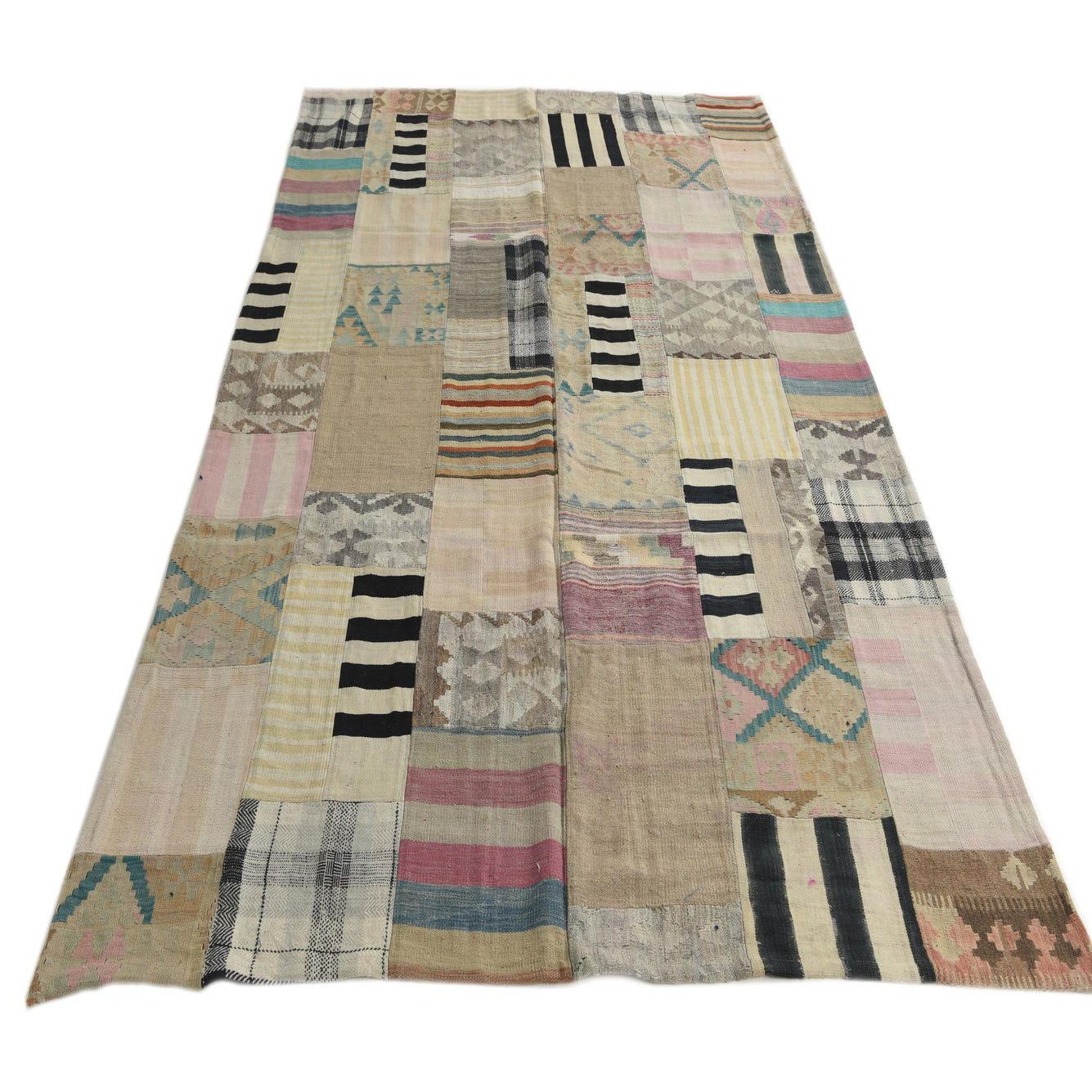 Given its textural and visual richness, the Kilim Patchwork rug is a fitting choice for spaces that embrace a bohemian, eclectic, or even modern farmhouse design ethos. It will complement interiors featuring natural wood furnishings, neutral-toned upholstery, and accessories that highlight artisanal or global inspirations. It can also provide a contrasting element to minimalist or industrial spaces, adding warmth and character.