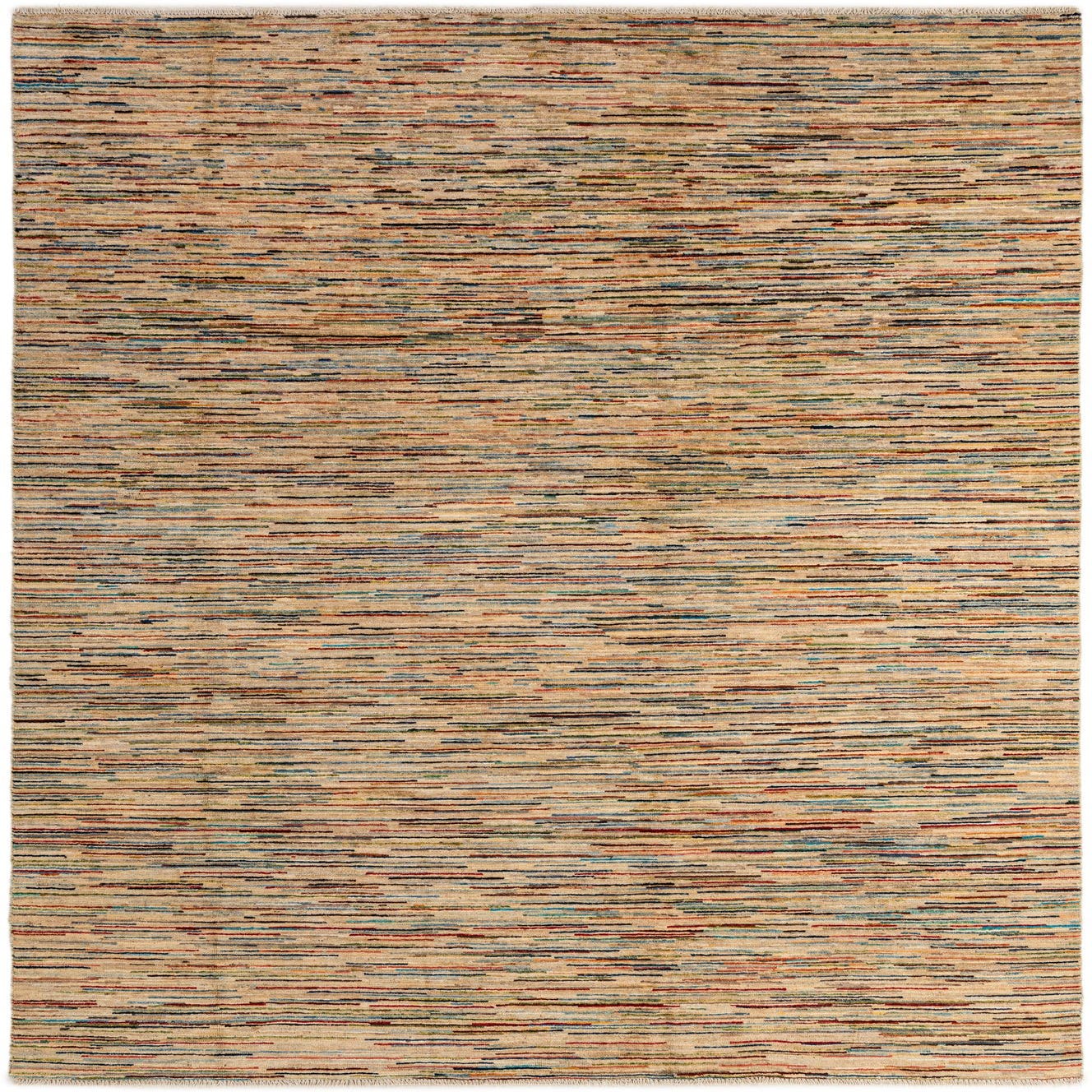 A 6x9 rectangular Modern Ziegler rug featuring a multi-colored striped pattern on a light beige background, suitable for a living room.