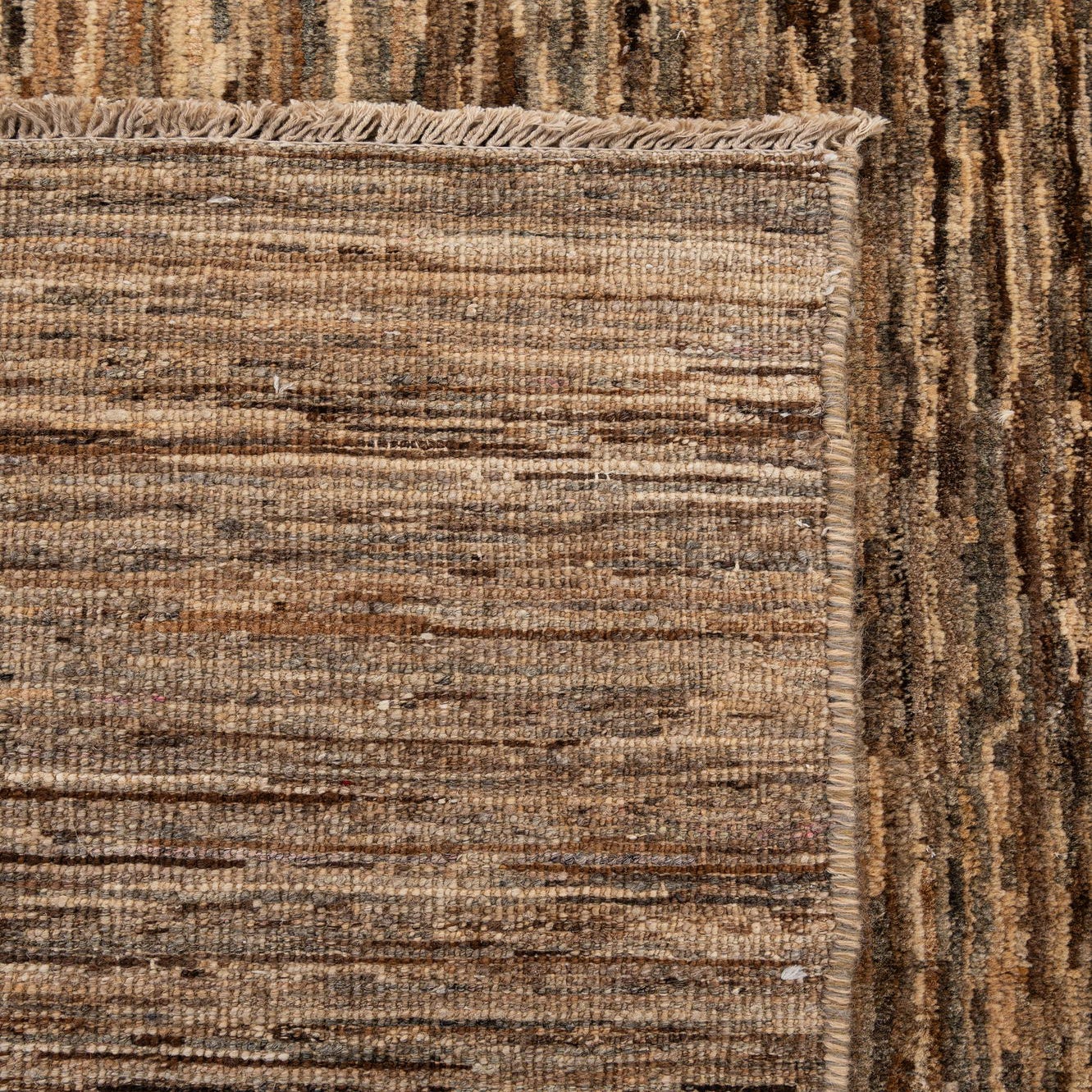 A 6x9 rectangular Modern Ziegler rug featuring a multi-colored stripe pattern in varying shades of brown, tan, and dark gray, perfect for a living room.