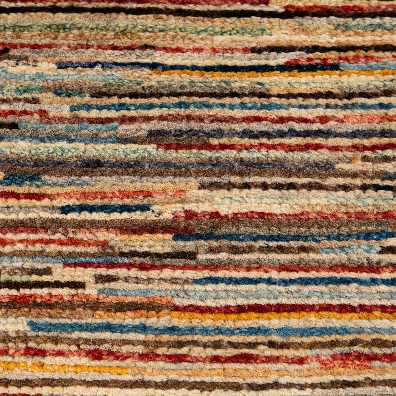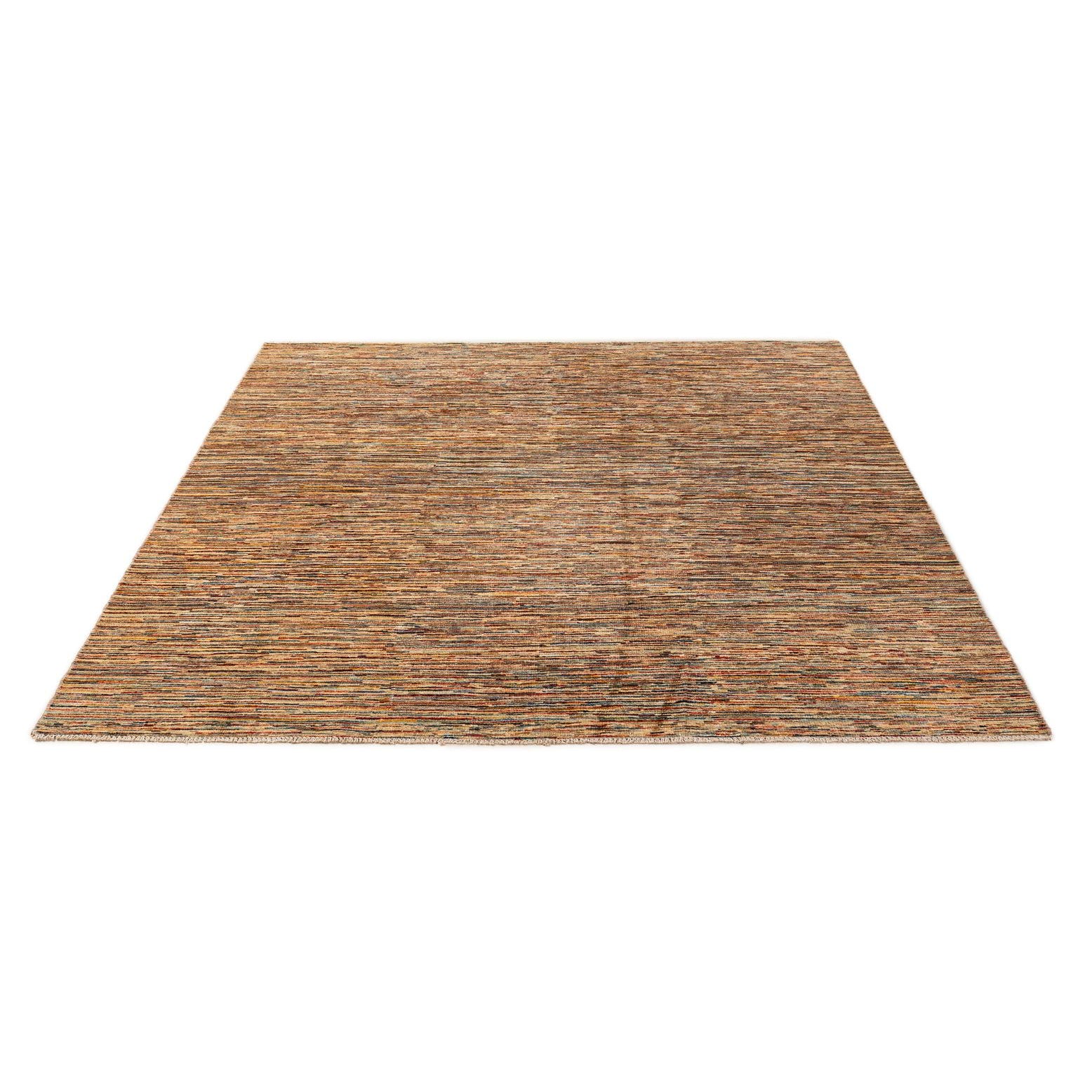 A 6x9 rectangular multi-colored Modern Ziegler rug with thin horizontal stripes, ideal for a living room or office.