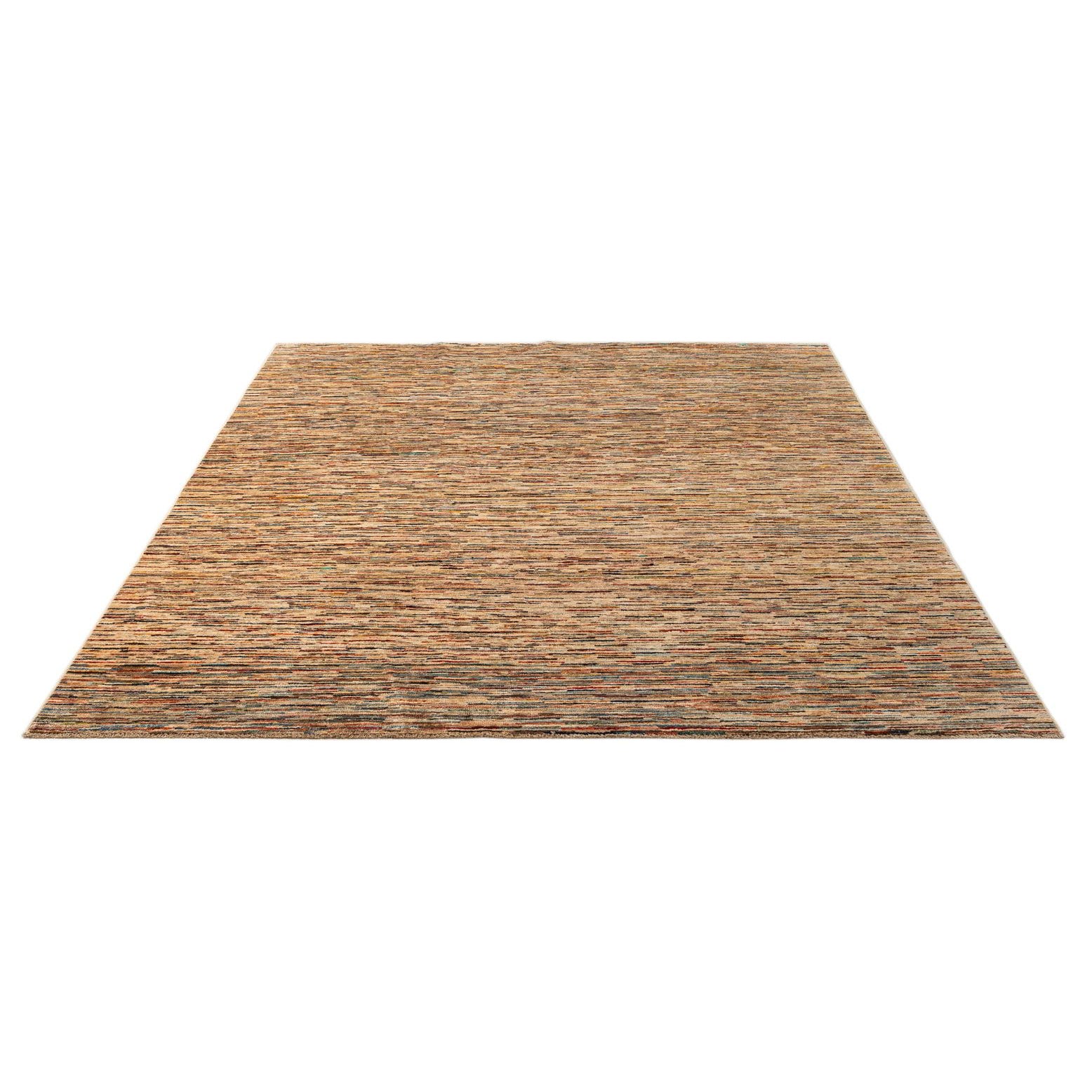 A 6x9 rectangular Modern Ziegler rug featuring a multi-colored stripe pattern on a light background, suitable for a living room.