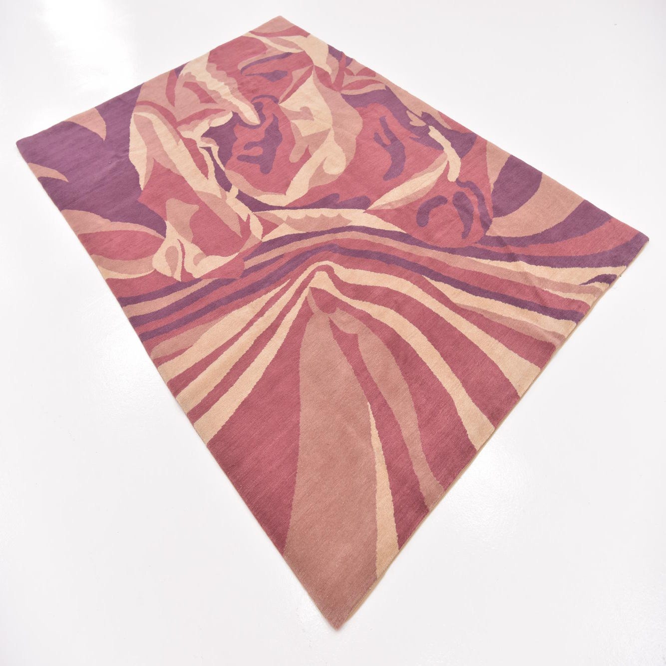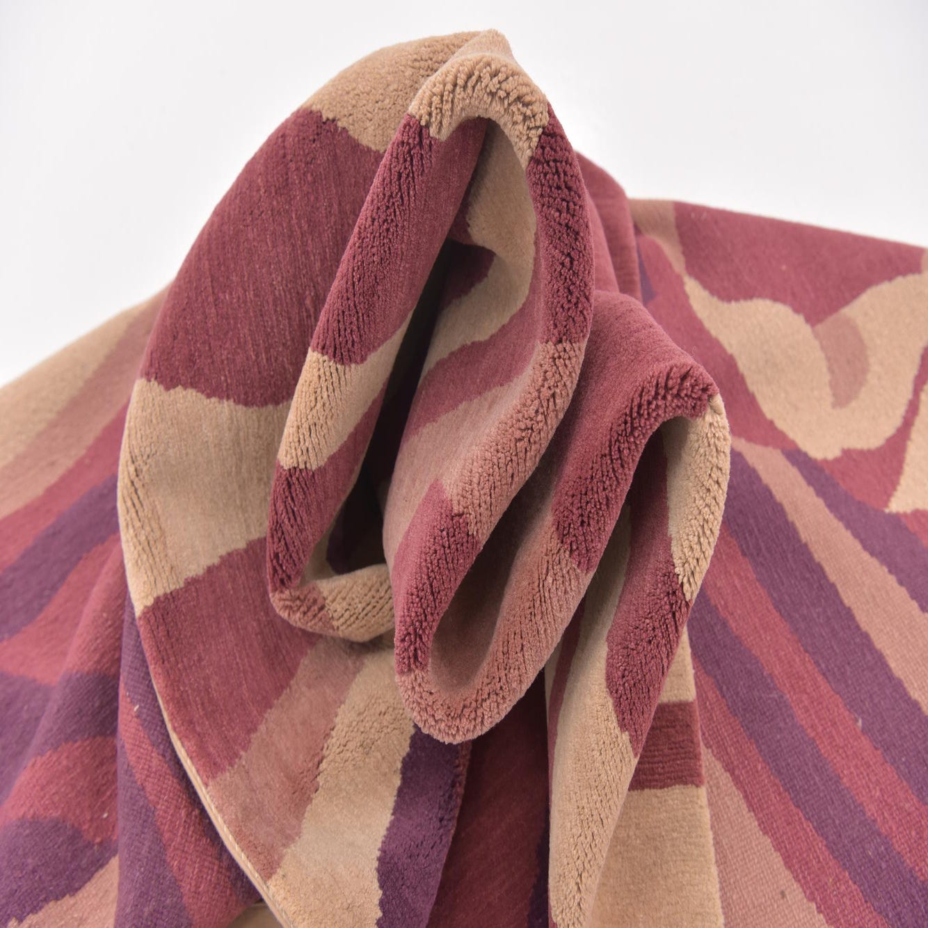 Artfully crafted, the layered swirls and organic forms present a contemporary spin that can bridge classic and modern interior styles. This rug makes a compelling statement piece in spaces such as a living room, study, or bedroom, where its rich hues can complement both neutral and color-rich decor. The Nepal rug's vivid design would pair well with solid-color upholstery, minimalist furniture, and could be a striking counterpoint to muted walls, bringing energy and artistic flair to the environment.