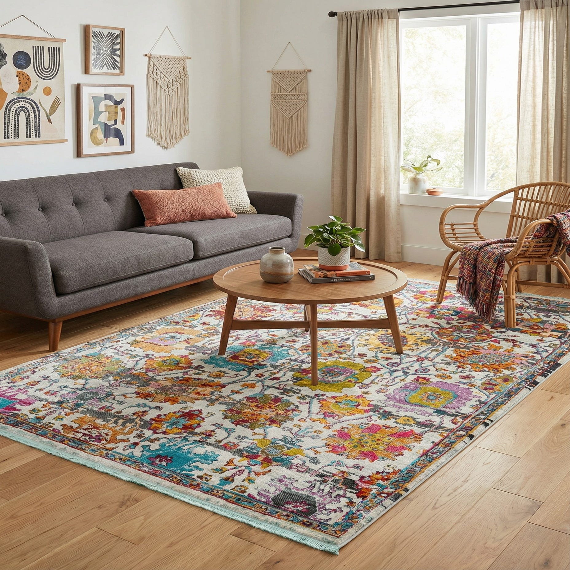 This rug is equipped with stain-resistant properties, ensuring ease of maintenance and longevity. It can seamlessly integrate into a variety of decor environments. From contemporary to eclectic, it is versatile enough to serve as a statement piece in a minimalist setting or to harmonize with a room already rich in color. Moreover, it would work well in a living room, adding vibrancy and warmth, or could serve as a focal point in a dining area, where it would inject energy into social gatherings.
