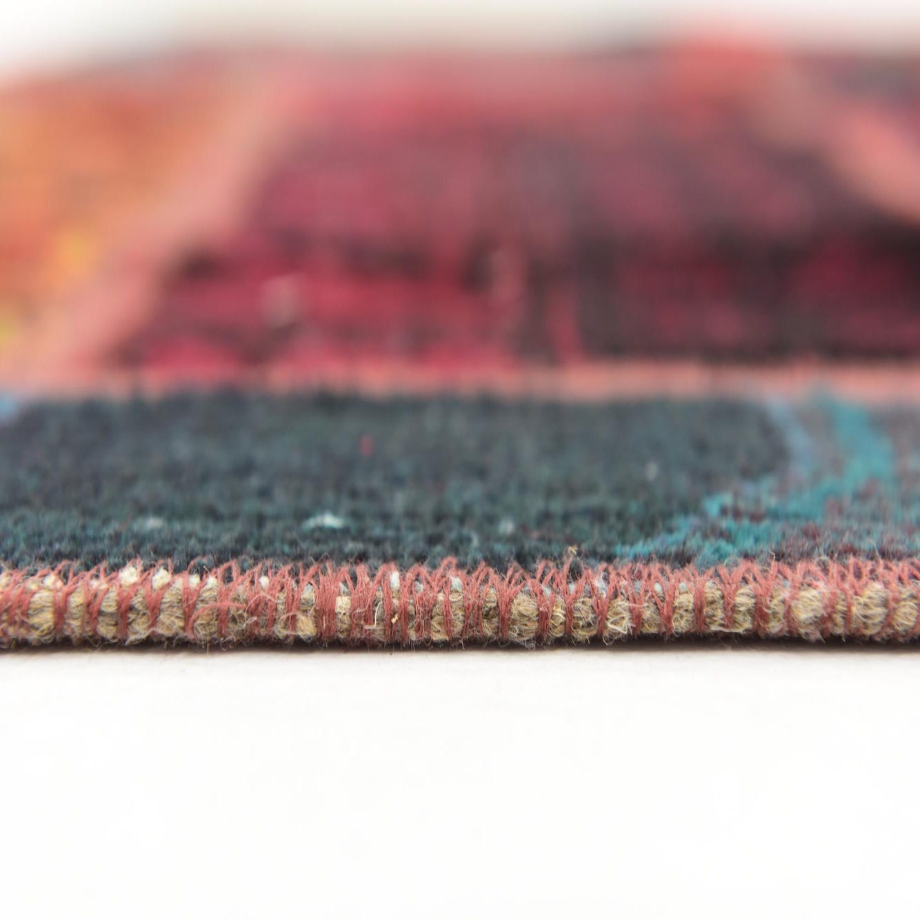 A 6x9 multi-colored rectangular wool rug featuring a vibrant patchwork design with various vintage Oriental and Persian patterns.