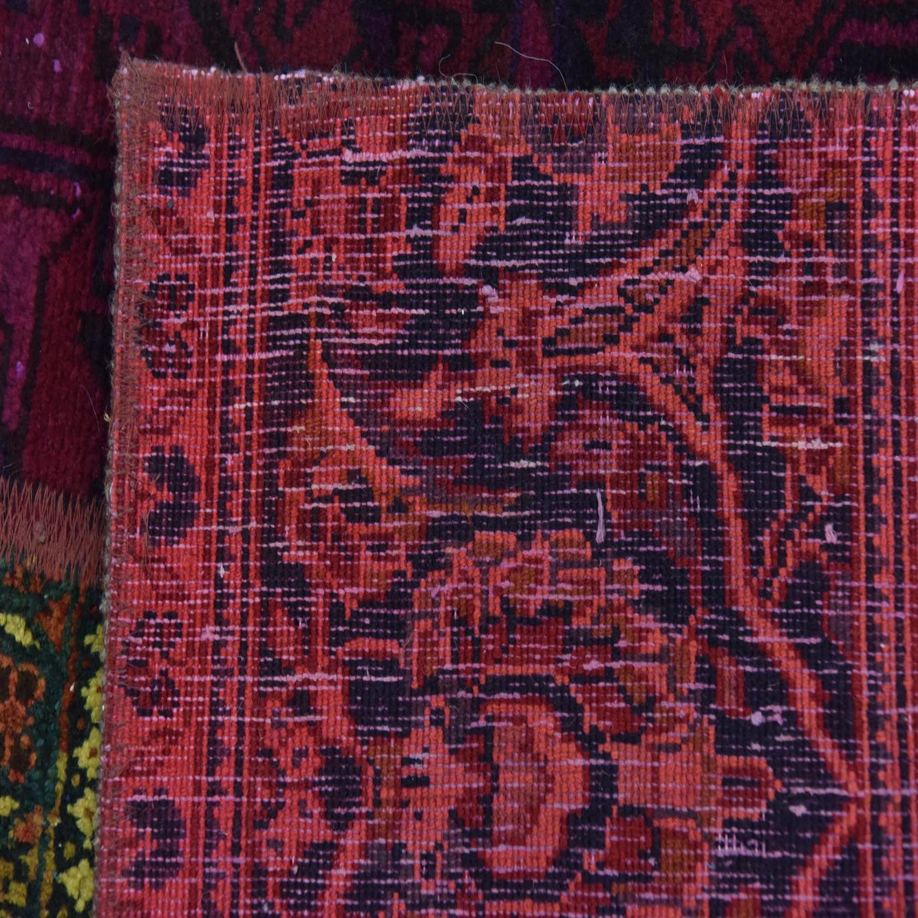 This Persian Ultra Vintage rug is an antique Persian Rug that has been washed, over-dyed, and then shaved down to a low pile. Look at the detail pictures to fully appreciate the uniqueness of this piece.