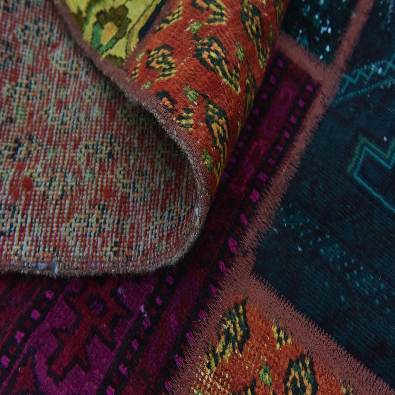 The Ultra Vintage Hand Knotted rug is a striking piece crafted from 100% wool, offering a harmonious blend of colors and designs that evoke a sense of history and artistry. Measuring 6x9, it is a versatile size for a variety of rooms. This rug features a dynamic array of colors including black, blue, green, ivory, navy blue, olive, red, pink, violet, and purple, set against a multifaceted background that ties the color palette together.