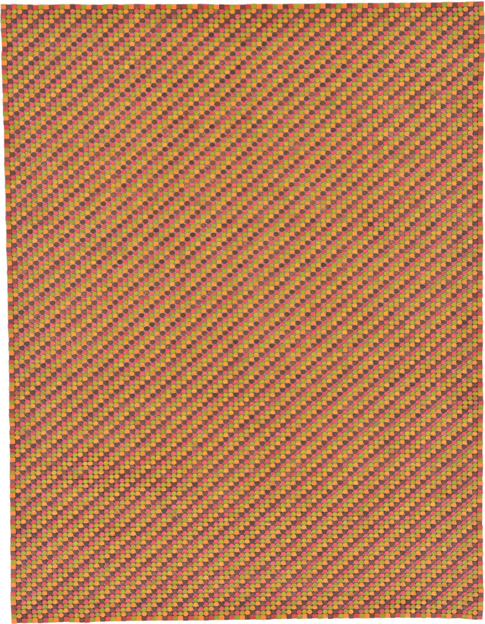 Primary color is Multi. Colors in this rug include: Multi, Brown, Green, Orange, Red, Candy.