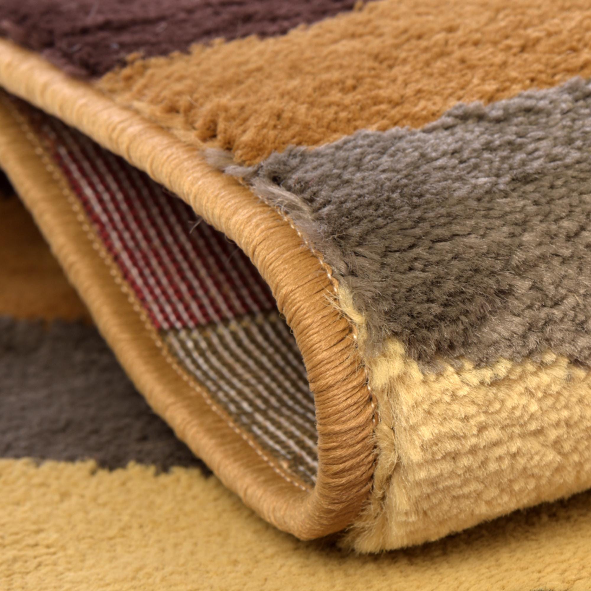 Octagonal and machine-made from 100% polypropylene, this rug presents a flowing wave pattern of concentric bands that move across a multi background. Warm tones of brown, light brown and beige alternate with richer accents of maroon, red and olive, while gray adds a cool counterpoint. The pile feels dense and smooth underfoot, with enough surface texture to show the color shifts clearly and provide a comfortable, cushioned touch.