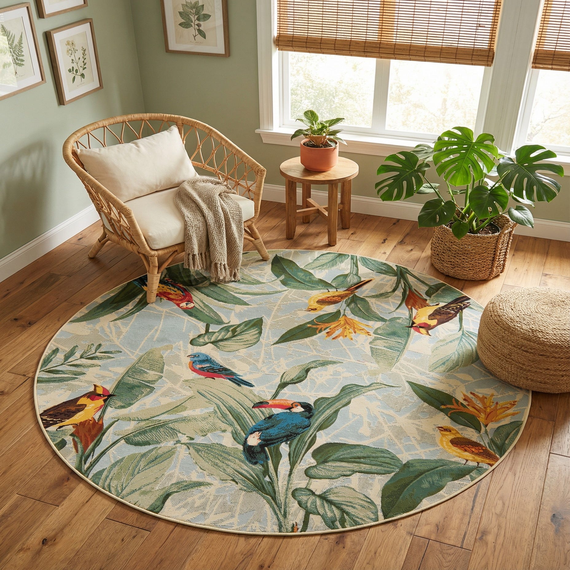 7' x 7' Washable Botanical Indoor / Outdoor Round Rug
