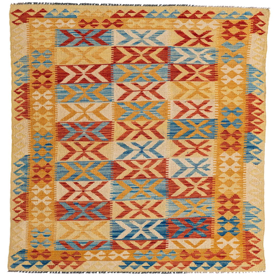 3' 5 x 6' 9 Hand Woven Kilim Maymana Wool Runner Rug