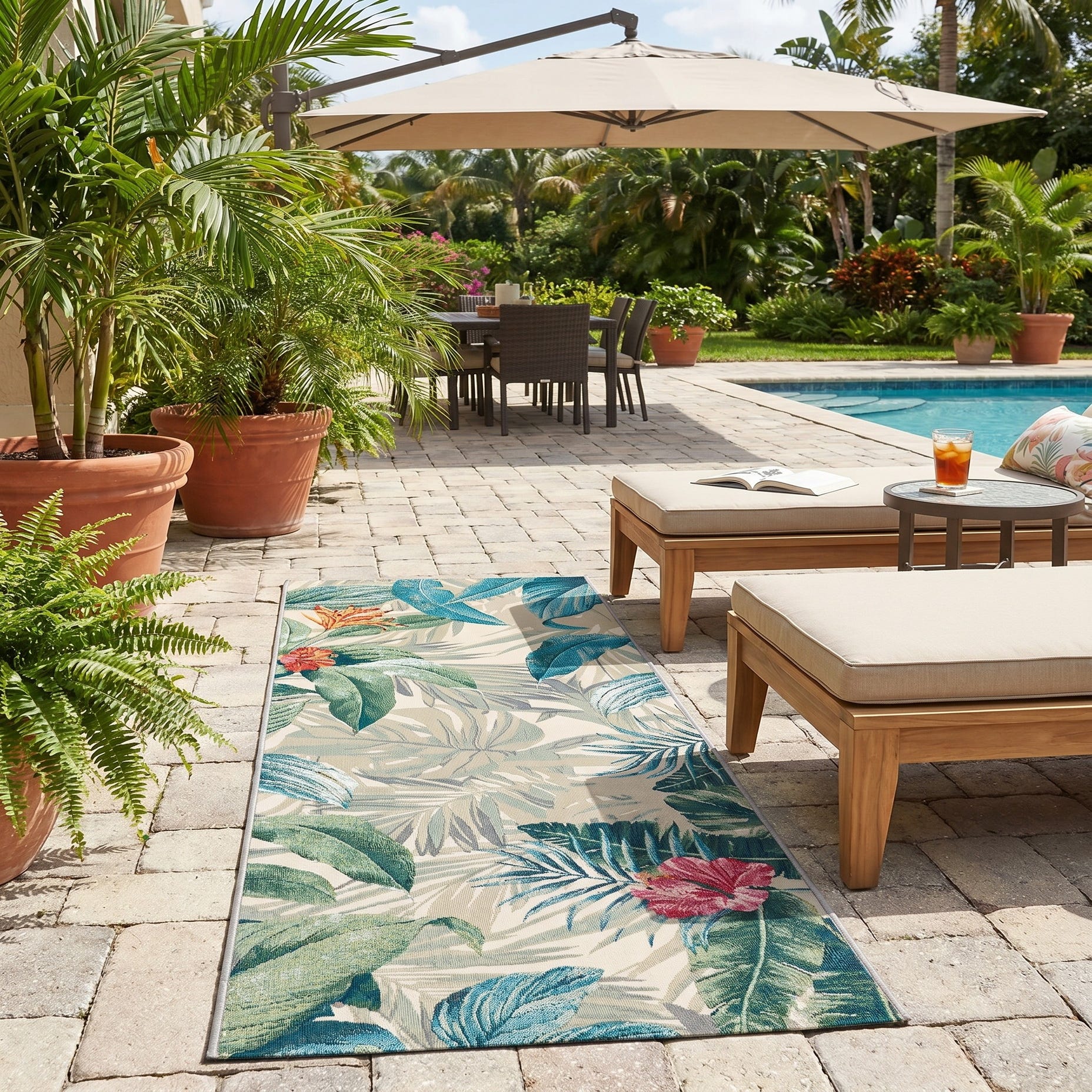2' 7 x 7' Easy-Clean Botanical Indoor / Outdoor Runner Rug