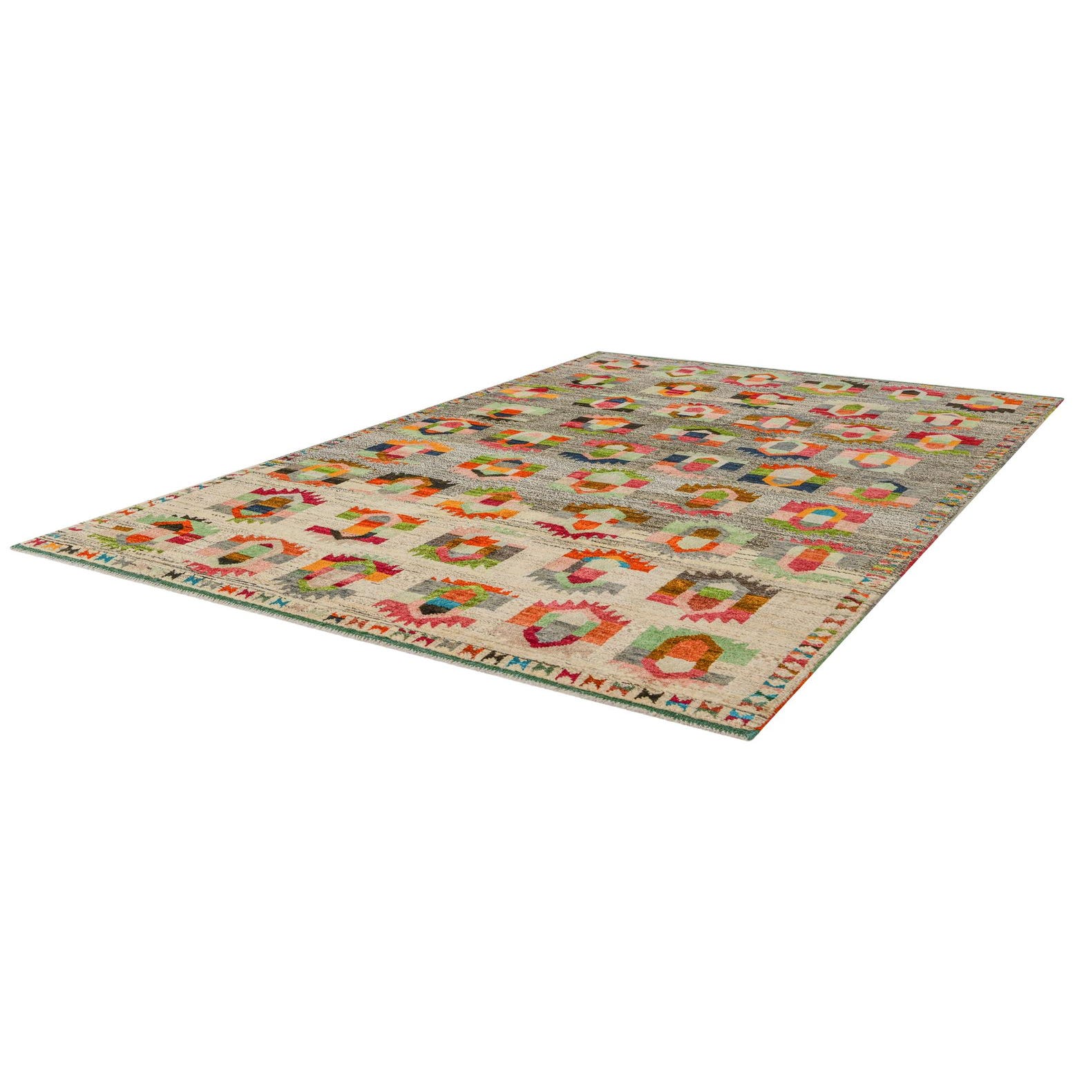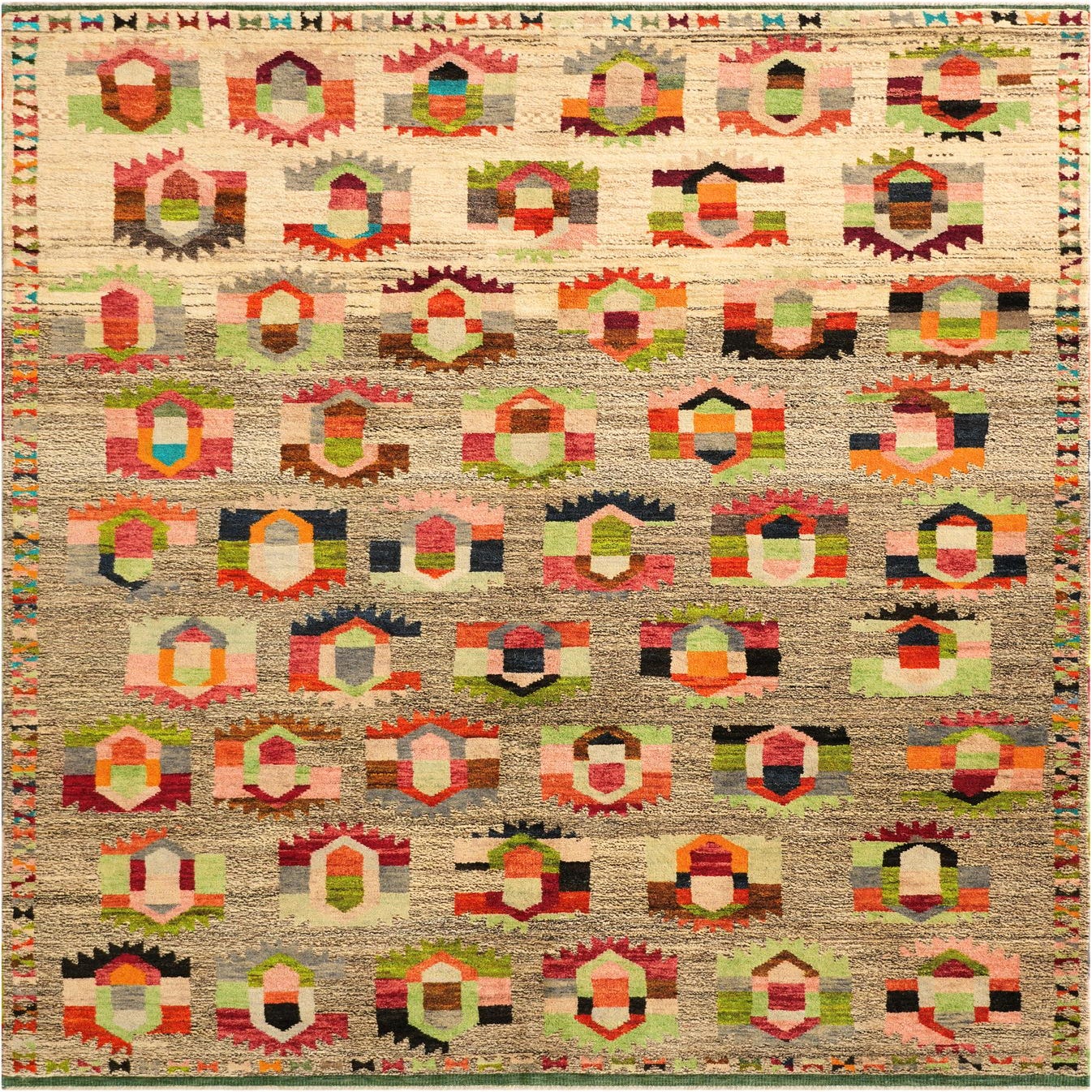Primary color is Multi. Colors in this rug include: Multi, Beige, Black, Blue, Brown, Gray, Green, Ivory, Red, Orange, Yellow, Pink.