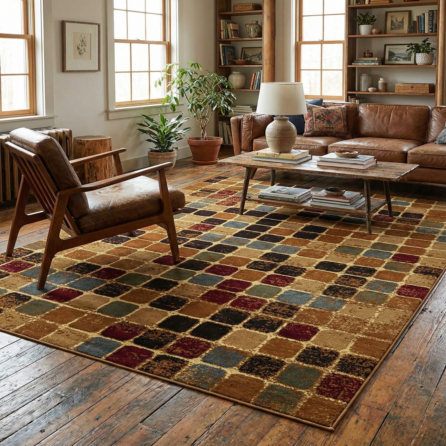 Machine made from 100% polypropylene, the rug has a low, even pile that lies flat and offers a smooth, comfortable feel underfoot. Ideal for anchoring a living room seating area or placing beneath a dining table, it also works well in a home office, den, or entry where pattern and color can define the space. Pair it with warm wood furniture and leather pieces for a cozy, grounded look, or use it to add color and texture to a neutral, mid-century modern or industrial-inspired interior.