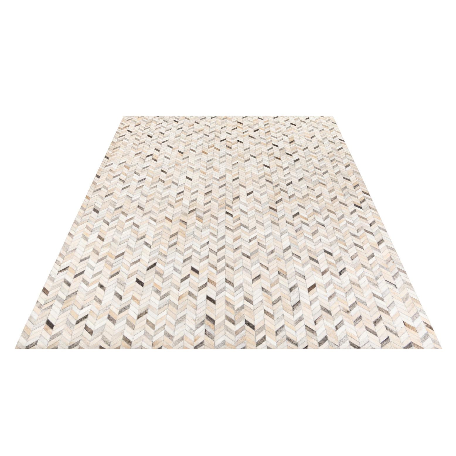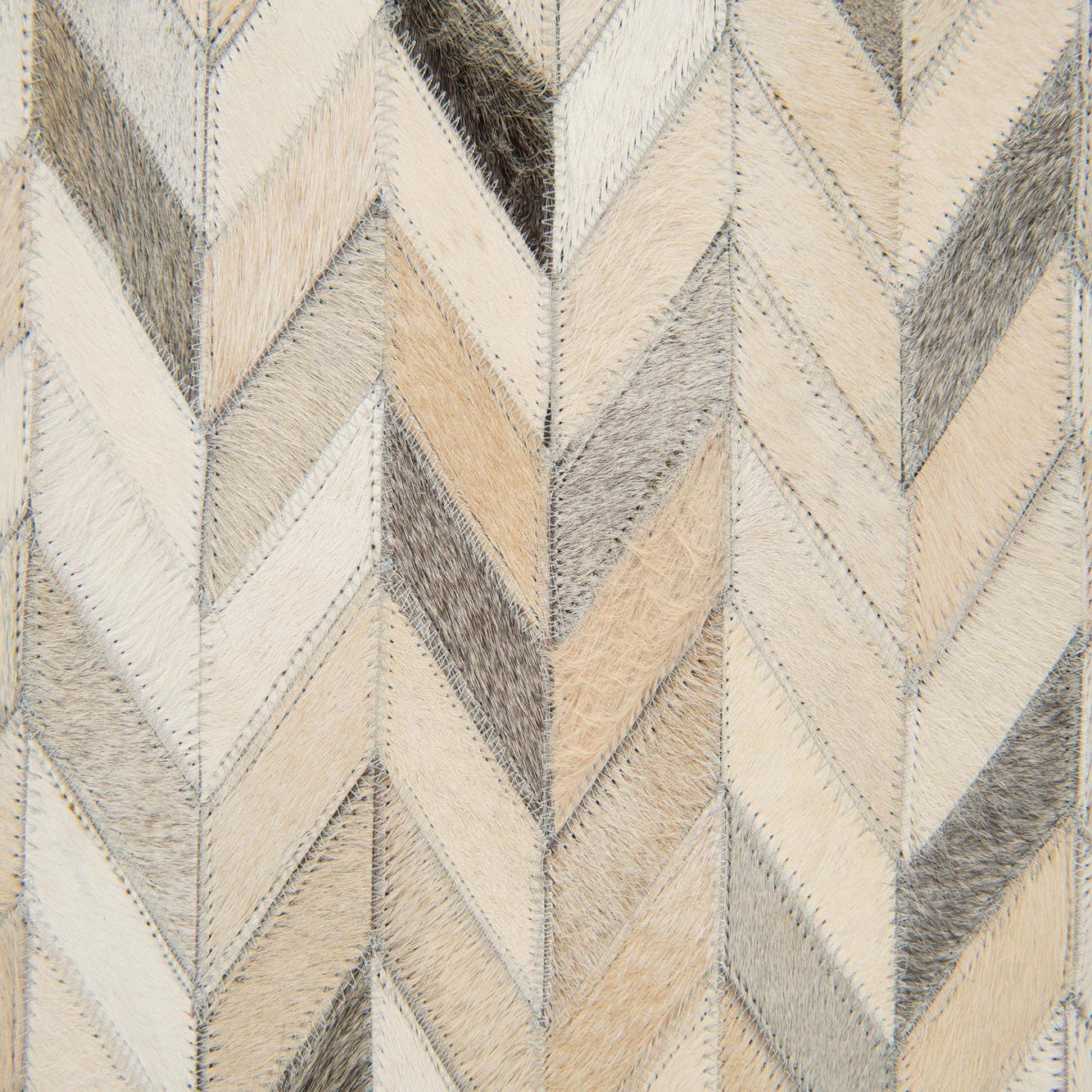 A 7x10 rectangular Cowhide Stocks rug from Rugs.com, featuring a modern multi-colored chevron pattern in natural tones.