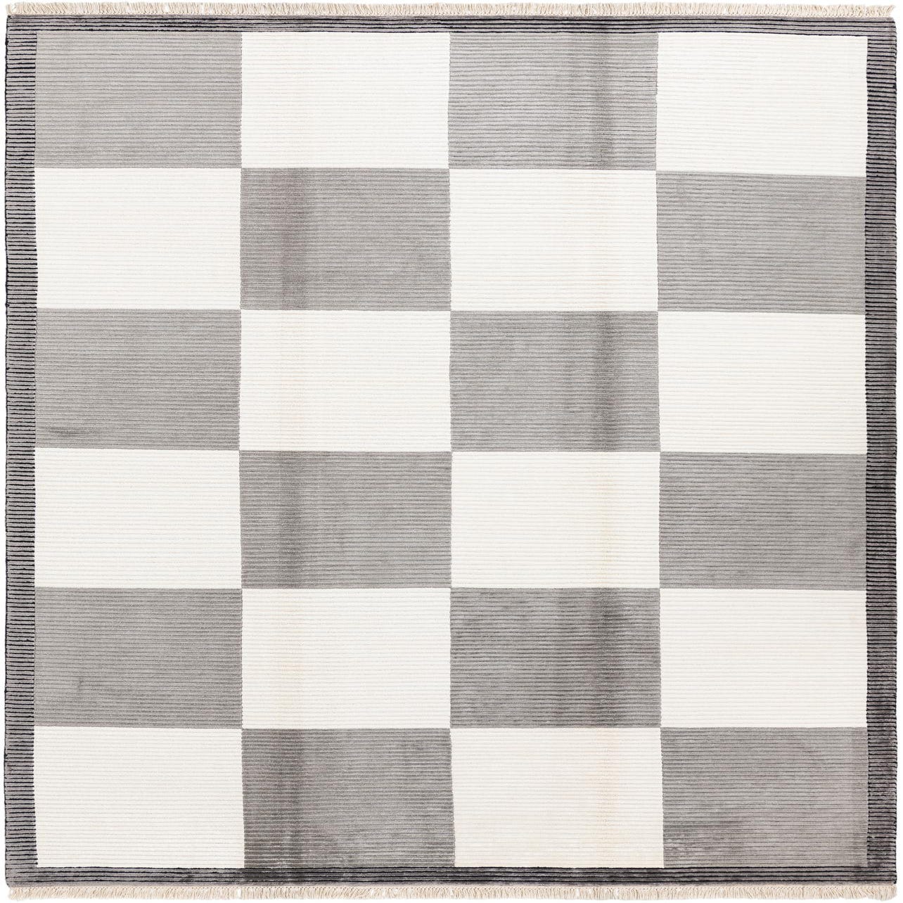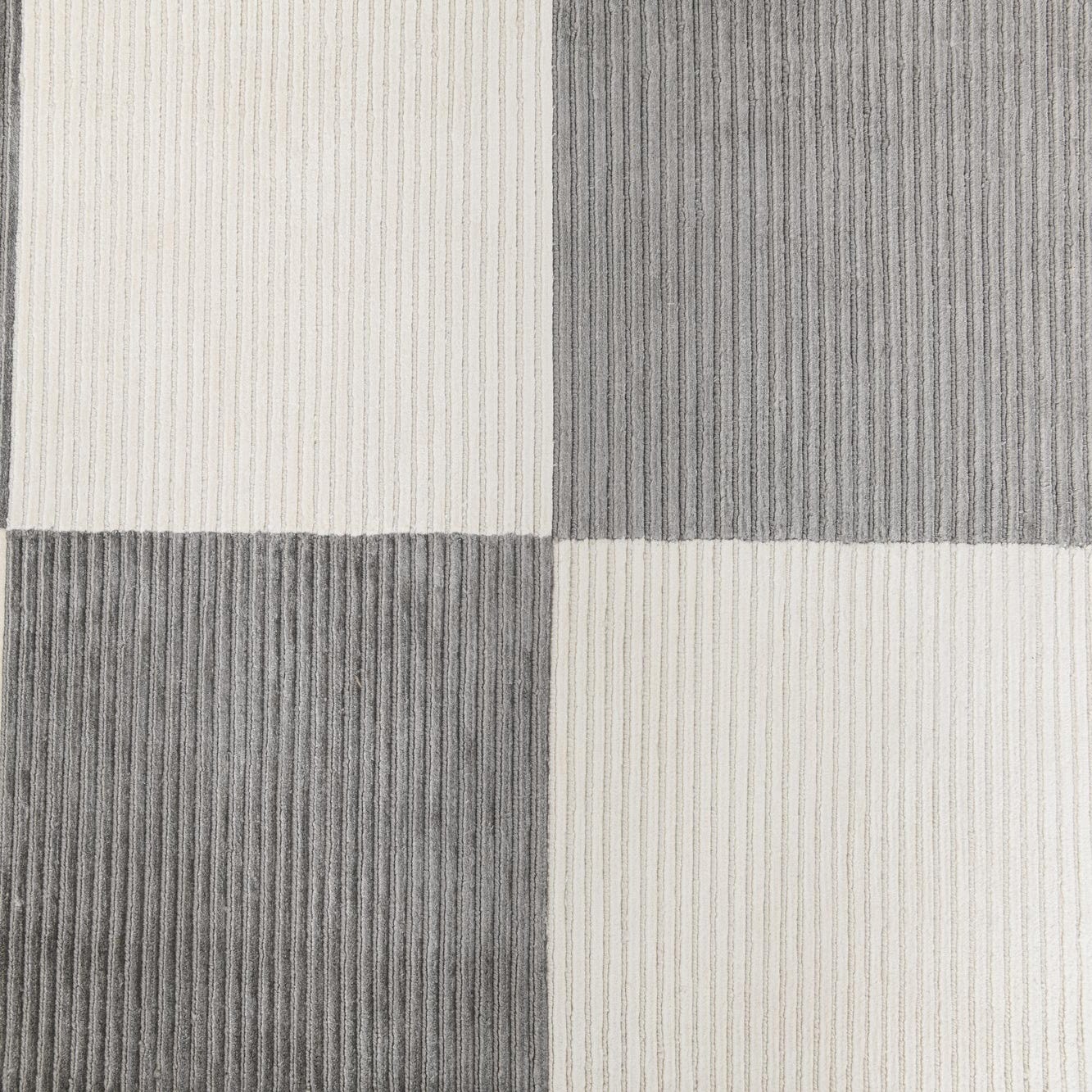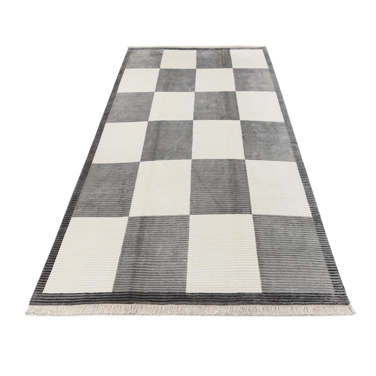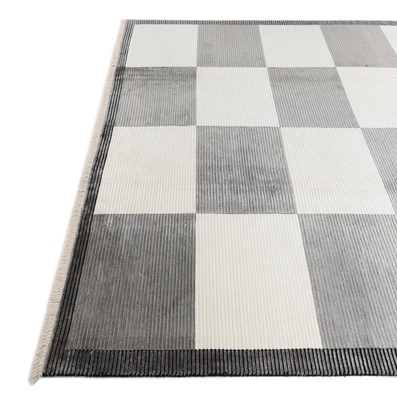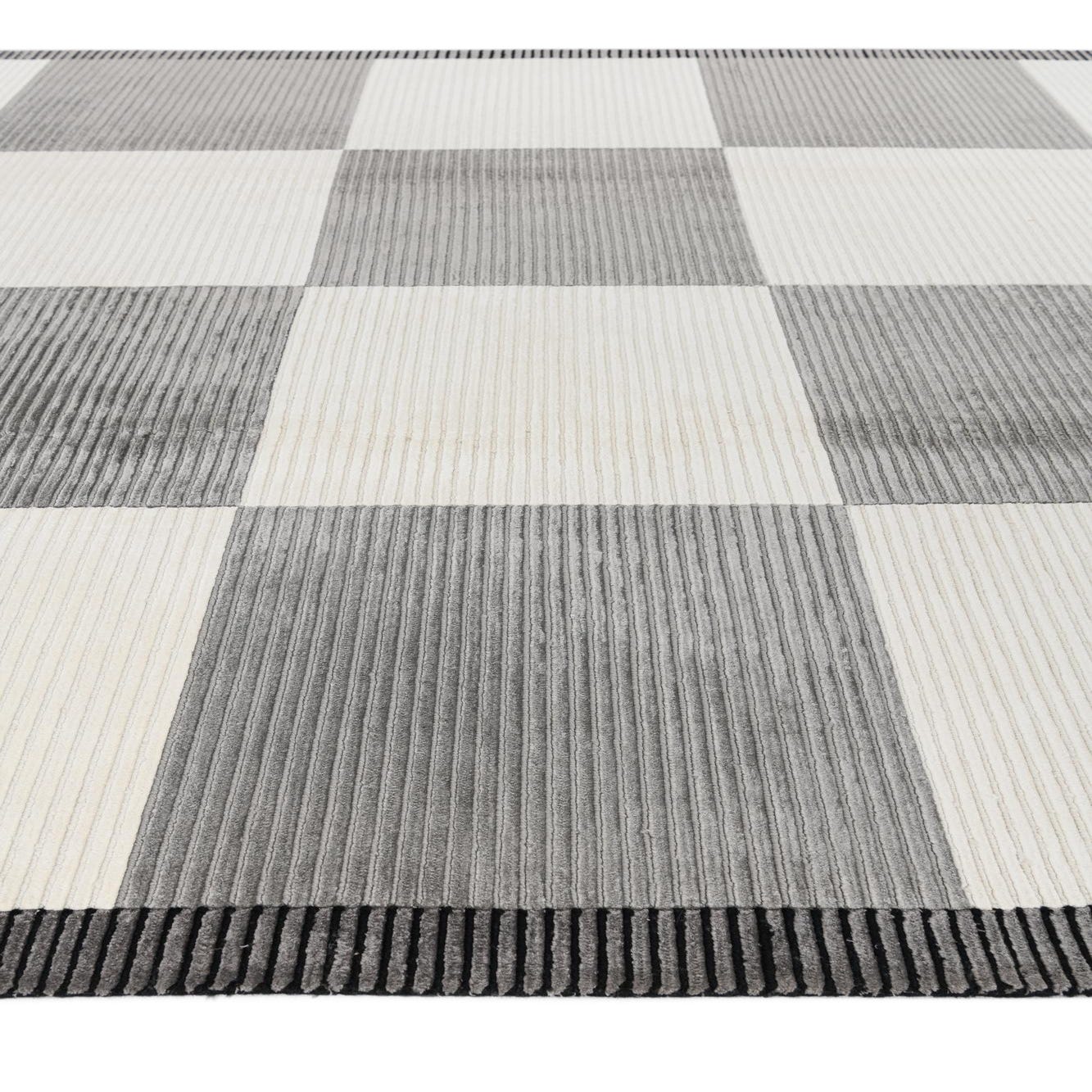 A 7x10 rectangular Darya rug with a modern checkerboard pattern in alternating light and dark gray squares, featuring subtle horizontal stripes.