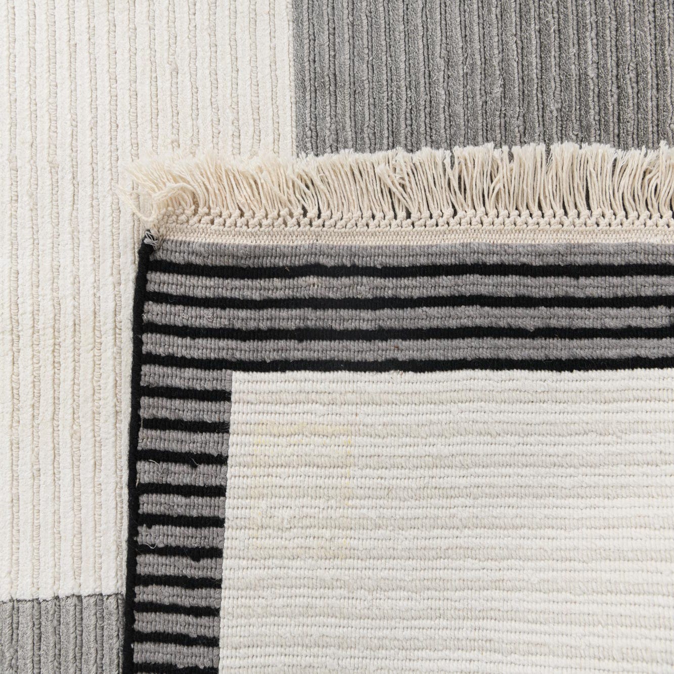 With its clean lines and neutral color scheme, this rug is versatile enough to complement a variety of design styles, from minimalist and Scandinavian-inspired spaces to more transitional settings where a balance of warmth and contemporary design is desired. The wool construction also adds a layer of warmth underfoot, making it a suitable choice for living rooms, bedrooms, or dining areas where comfort is a priority without sacrificing style.