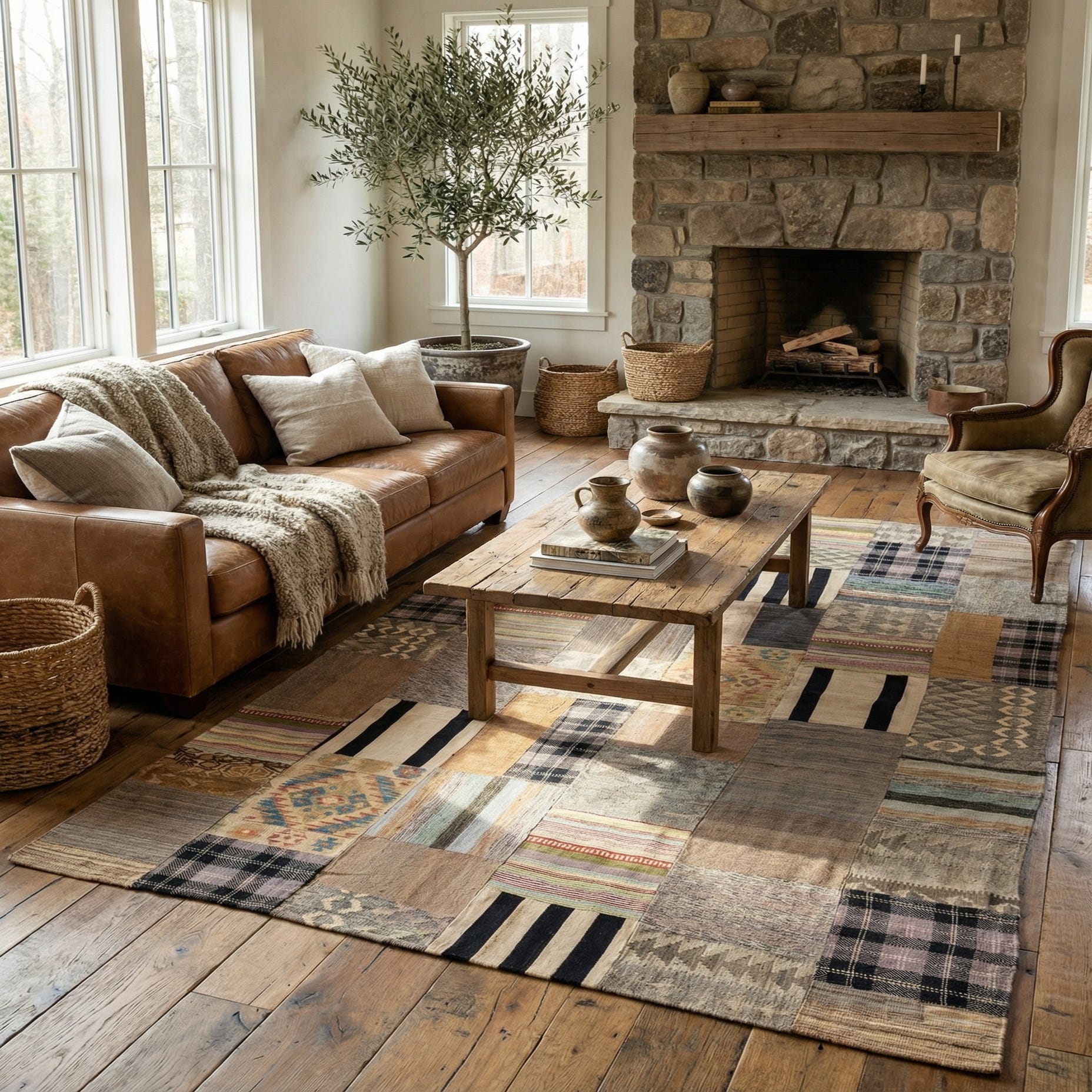 6' 6 x 9' 9 Hand Woven Kilim Patchwork Wool Rug