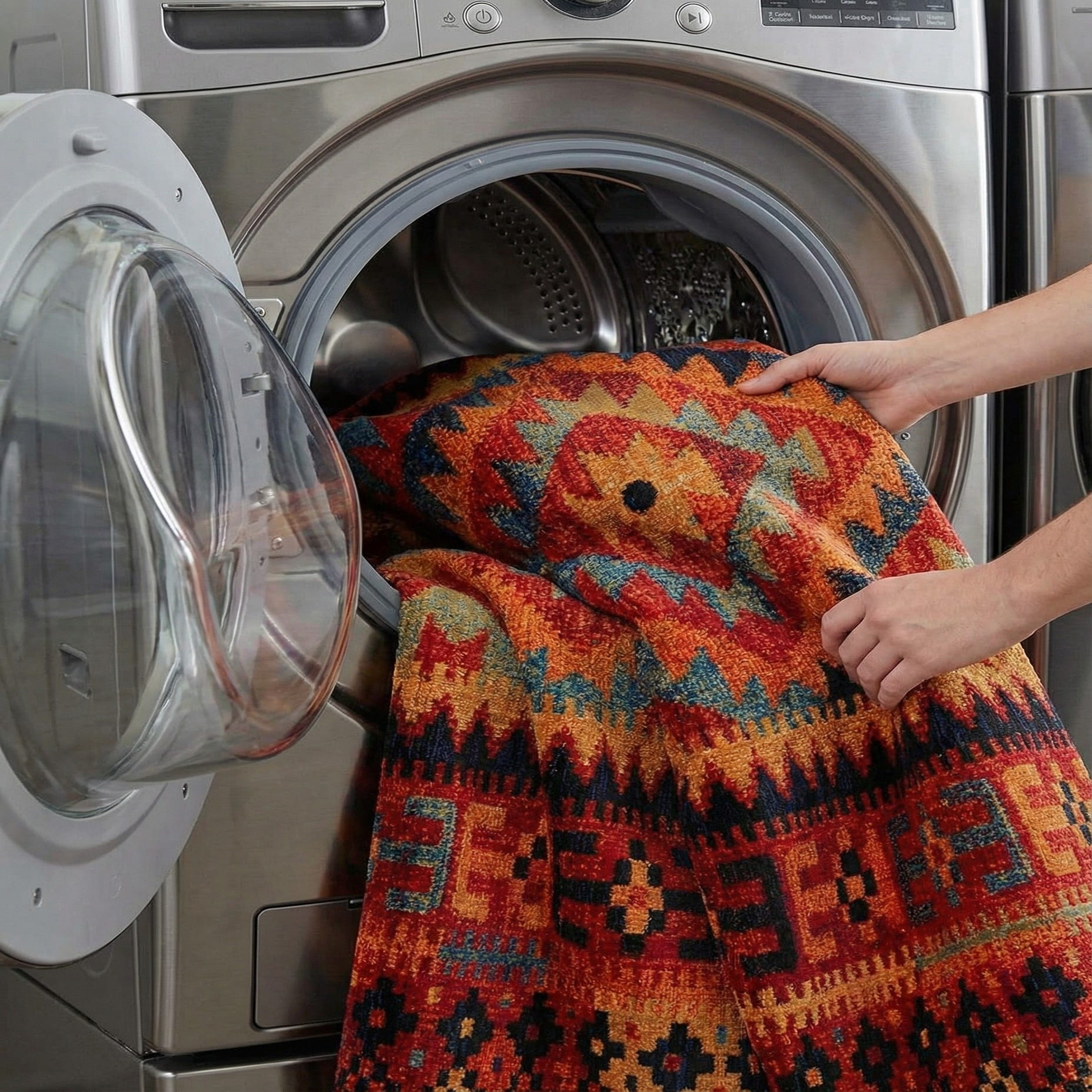 This rug works well in casual indoor or covered outdoor spaces where color and pattern bring energy—try it under a dining table to ground warm wood tones, in a sunroom paired with rattan and leather, or layered beneath a sofa in a bohemian or global-inspired living room. It also pairs easily with neutral upholstery and textured accents like jute, woven baskets, and matte metal lighting for a balanced, collected look.