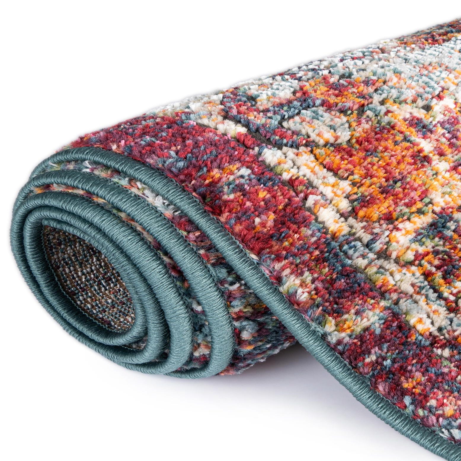 Underfoot the machine-made polypropylene and polyester construction produces a low-to-medium pile with a soft hand and subtle sheen, giving just enough cushion without losing pattern clarity. The octagonal shape adds architectural interest and works well beneath a round dining table or as an anchor for a small seating area or entry foyer. Pair it with warm wood furniture and leather or linen upholstery for a classic, lived-in feel, or layer with rattan and mixed metals to complement bohemian and transitional interiors. The durable, machine-made construction makes it a practical choice for everyday spaces.