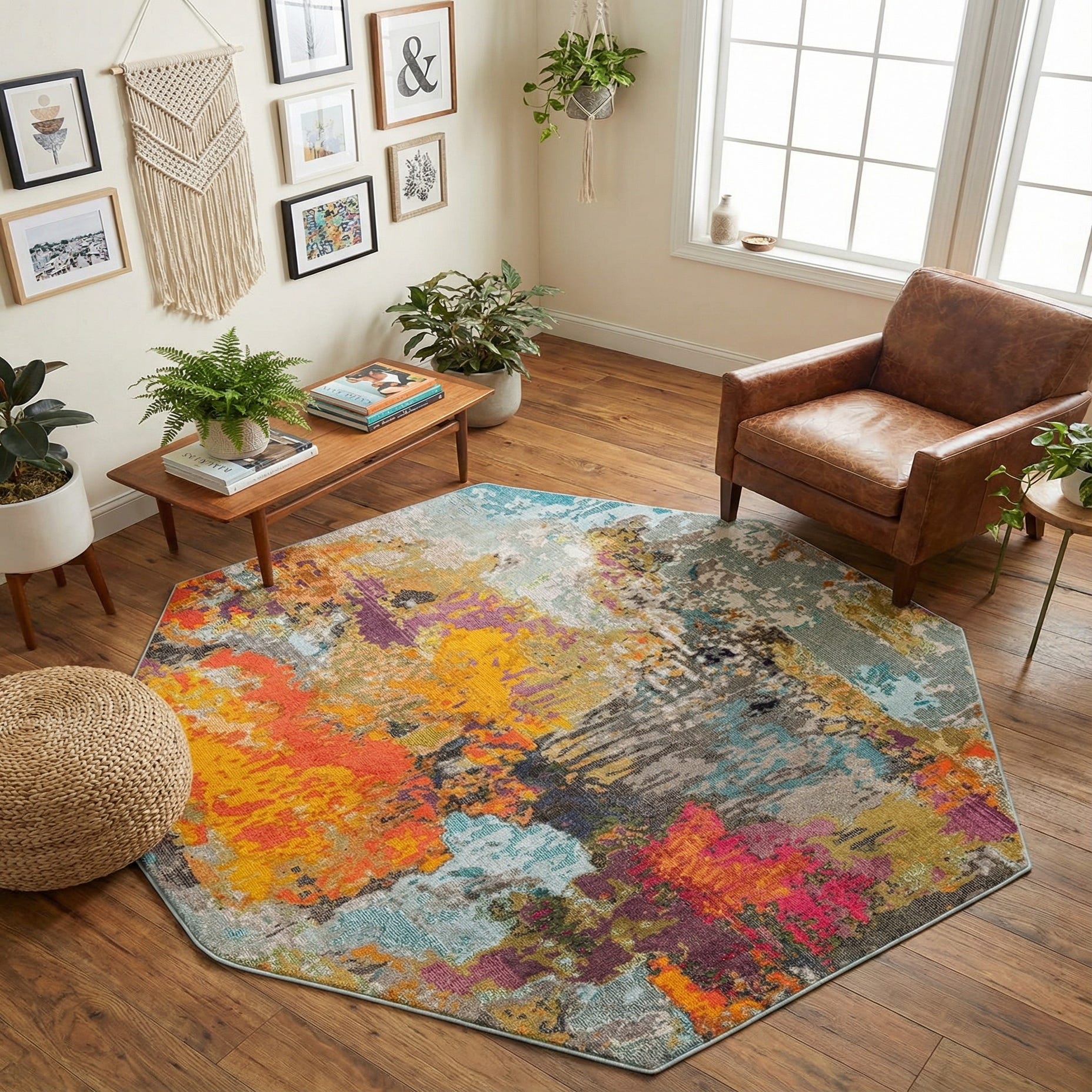 7' 10 x 7' 10 Washable Vivid Octagon Rug