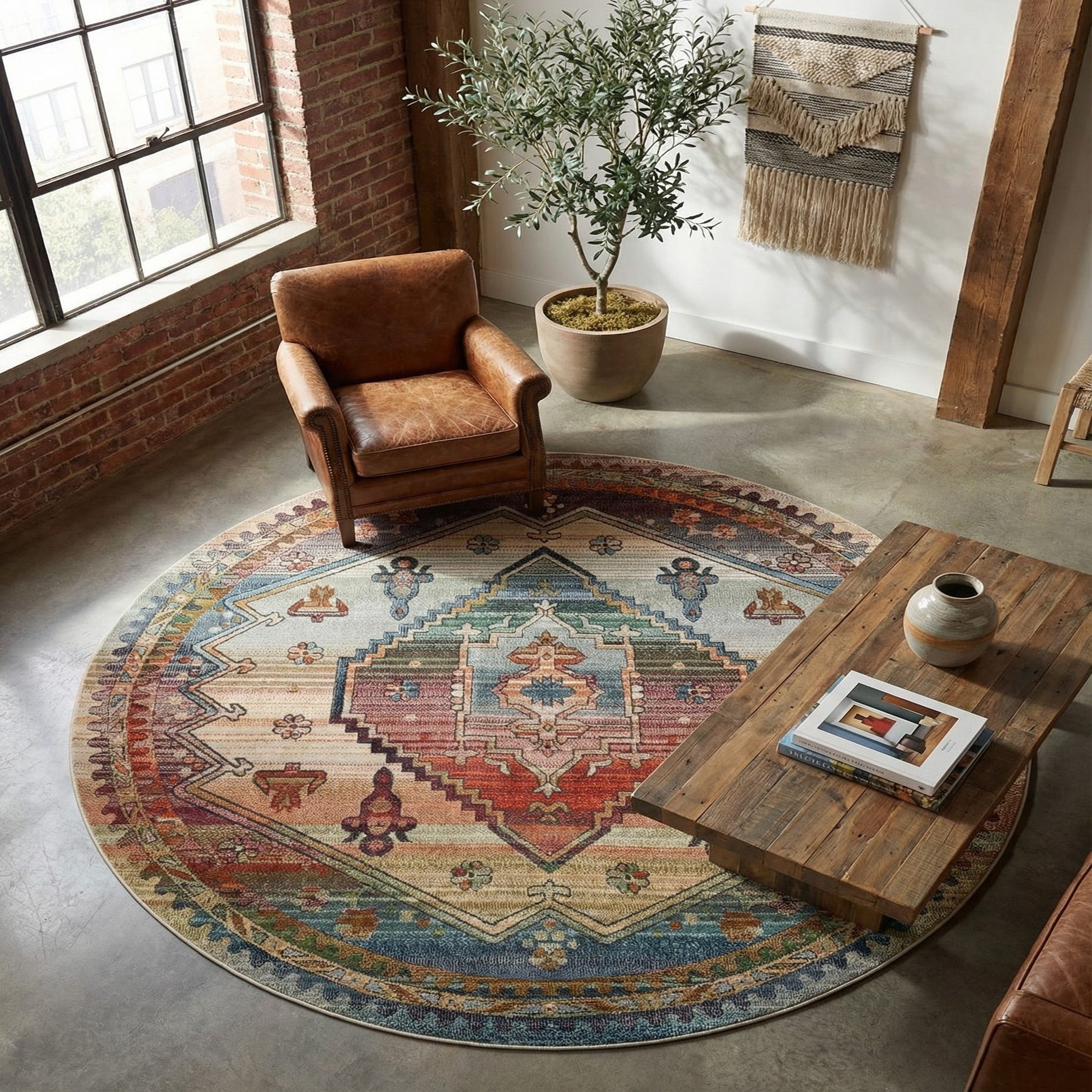 Primary color is Multi. Colors in this rug include: Multi, Beige, Blue, Brown, Green, Light Blue, Light Green, Navy Blue, Orange, Peach, Plum Red, Red.