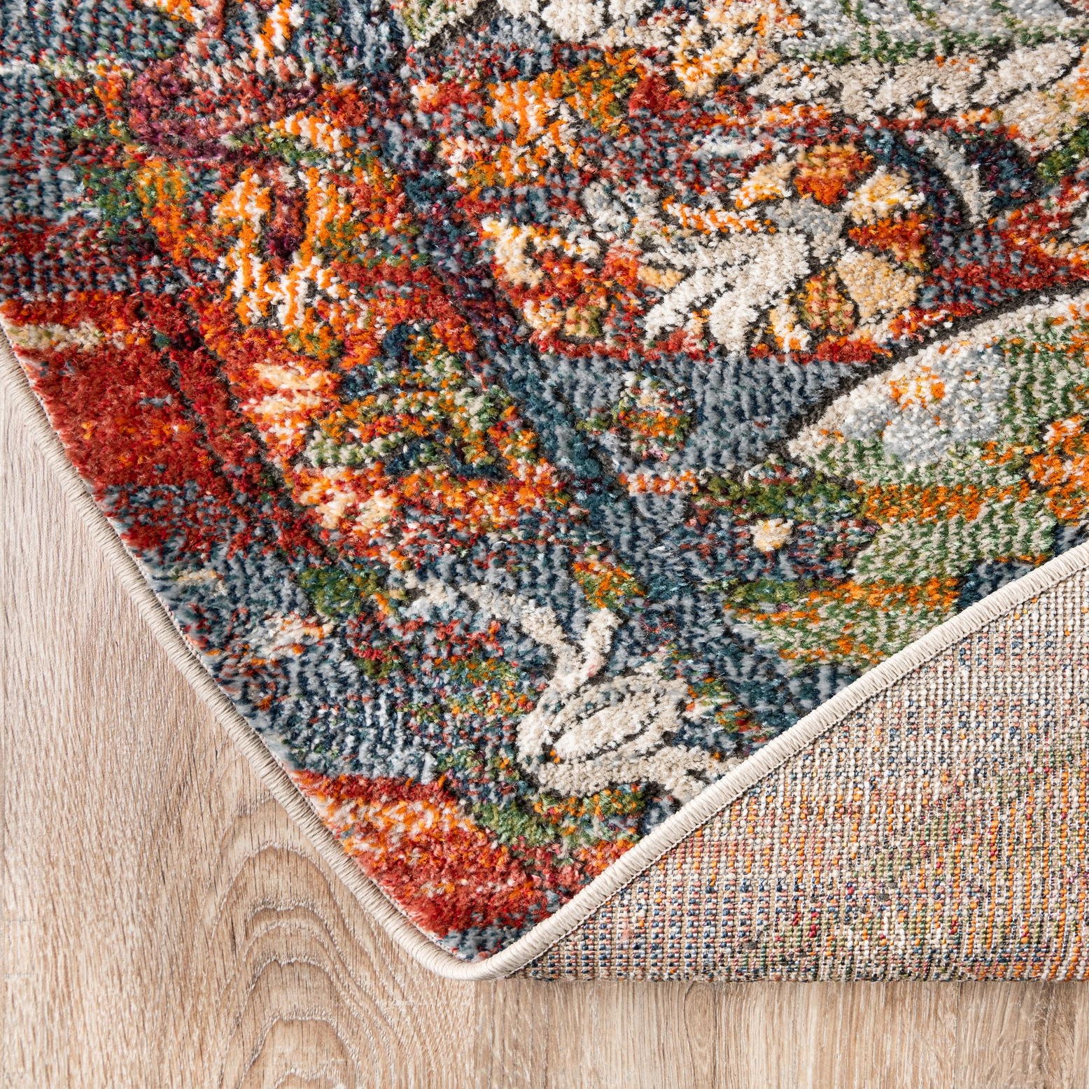 Primary color is Multi. Colors in this rug include: Multi, Beige, Blue, Green, Ivory, Navy Blue, Orange, Peach, Purple, Red.
