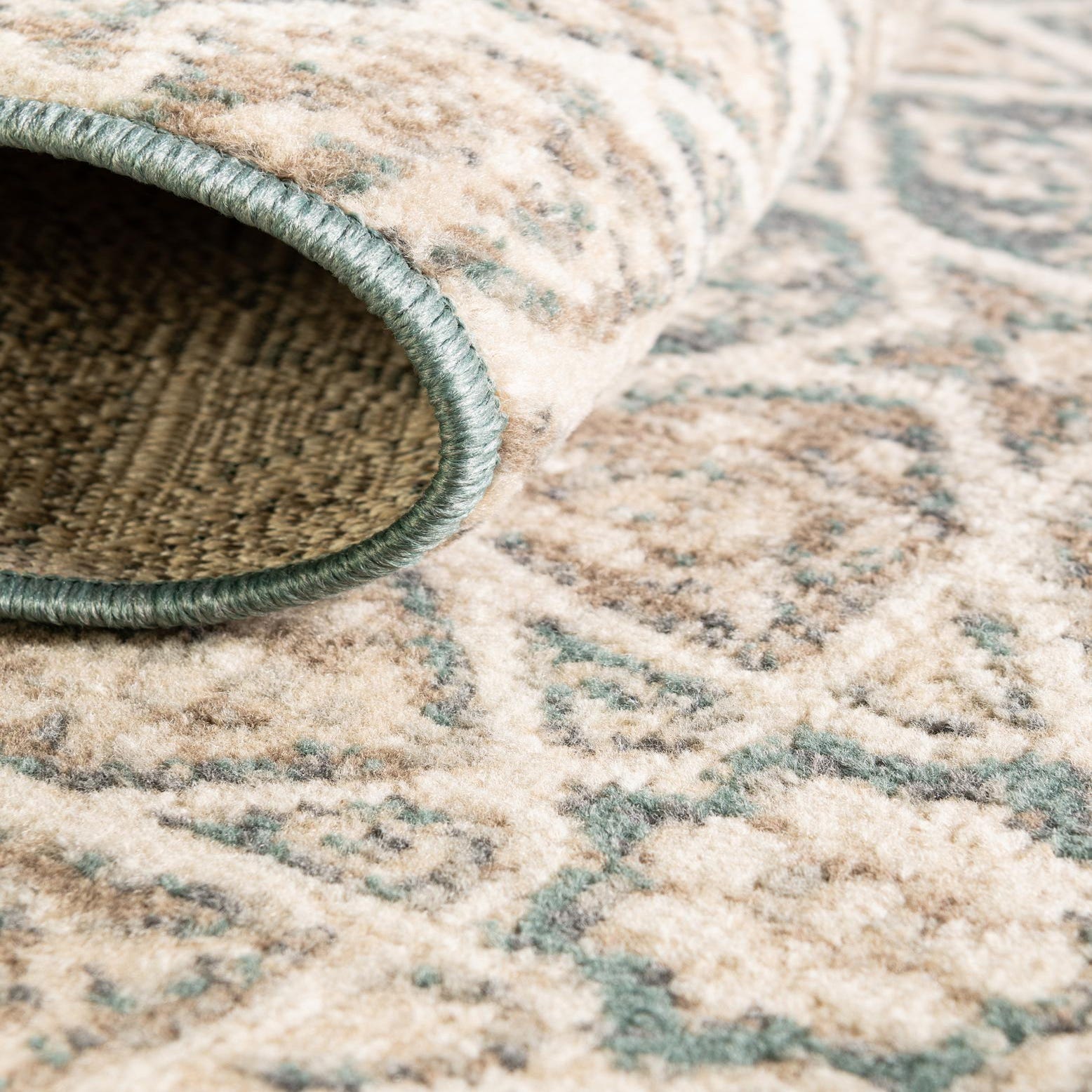 The design and muted palette work well in transitional, modern-boho, or casually refined interiors. Use it to anchor a round dining table, define a living room conversation area, or add pattern and warmth to an entryway or sunroom. Pair with natural wood furniture, linen upholstery, and indoor plants to emphasize the tan and green tones, or combine with leather and metal accents for a layered, lived-in look.