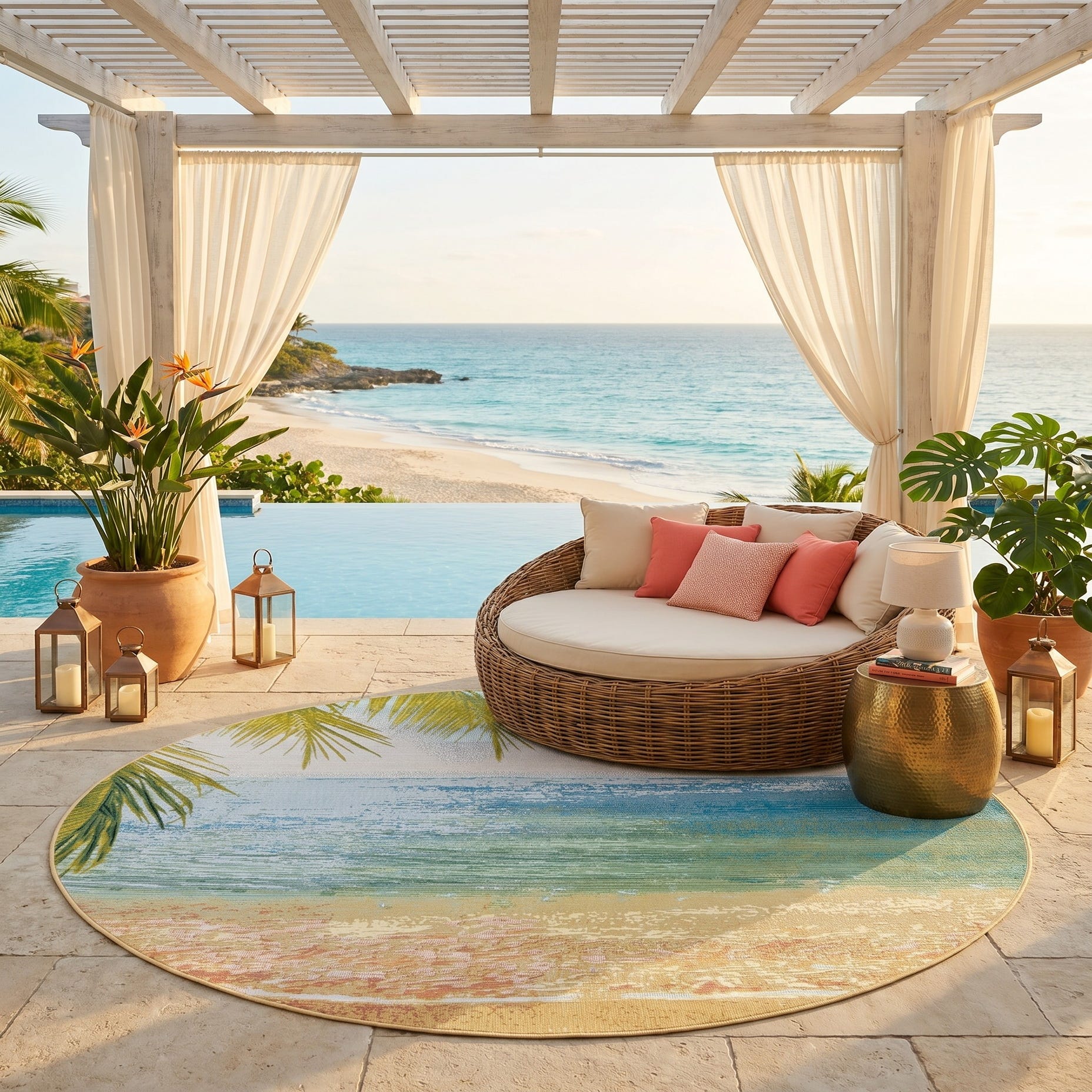 7' 10 x 7' 10 Easy-Clean Coastal Indoor / Outdoor Round Rug
