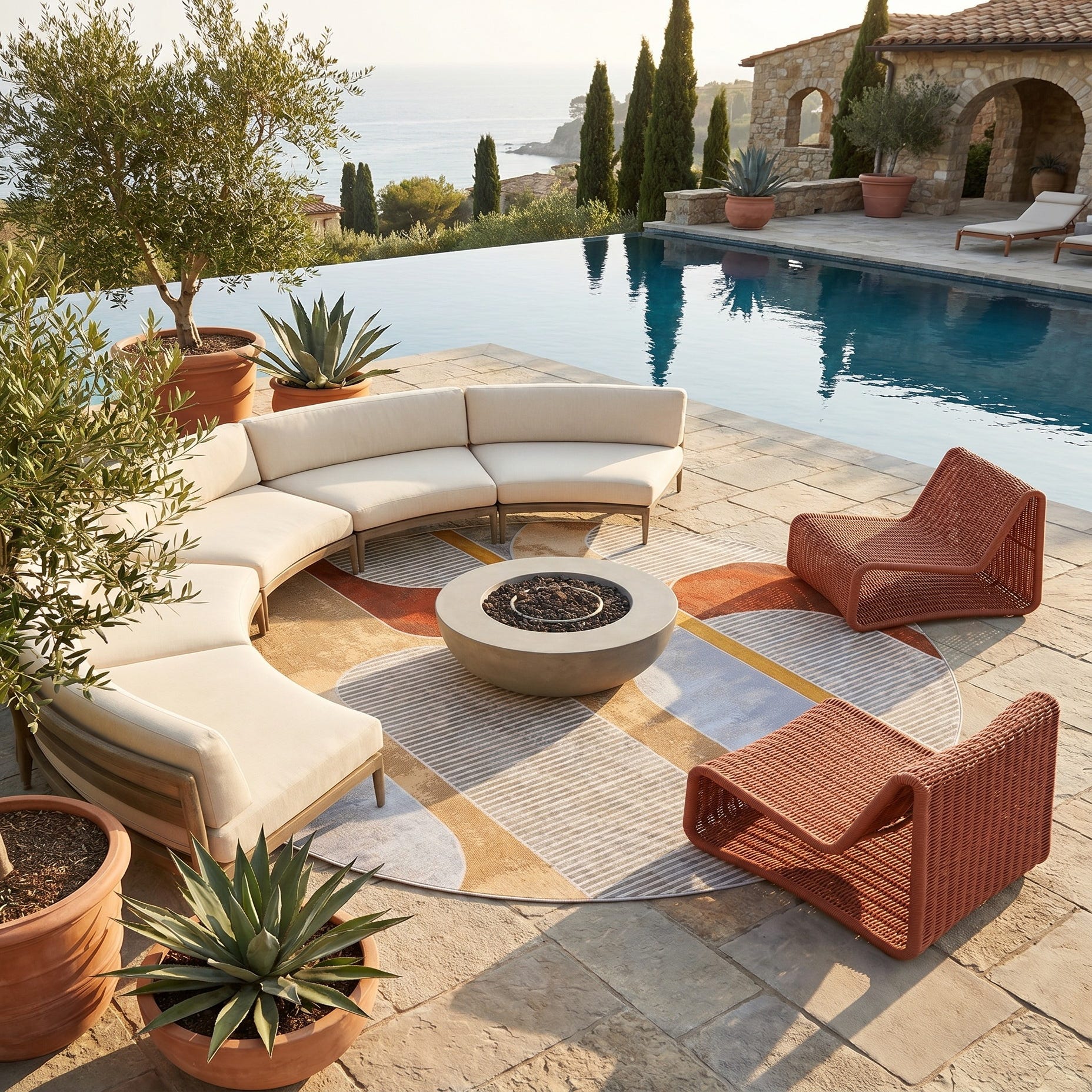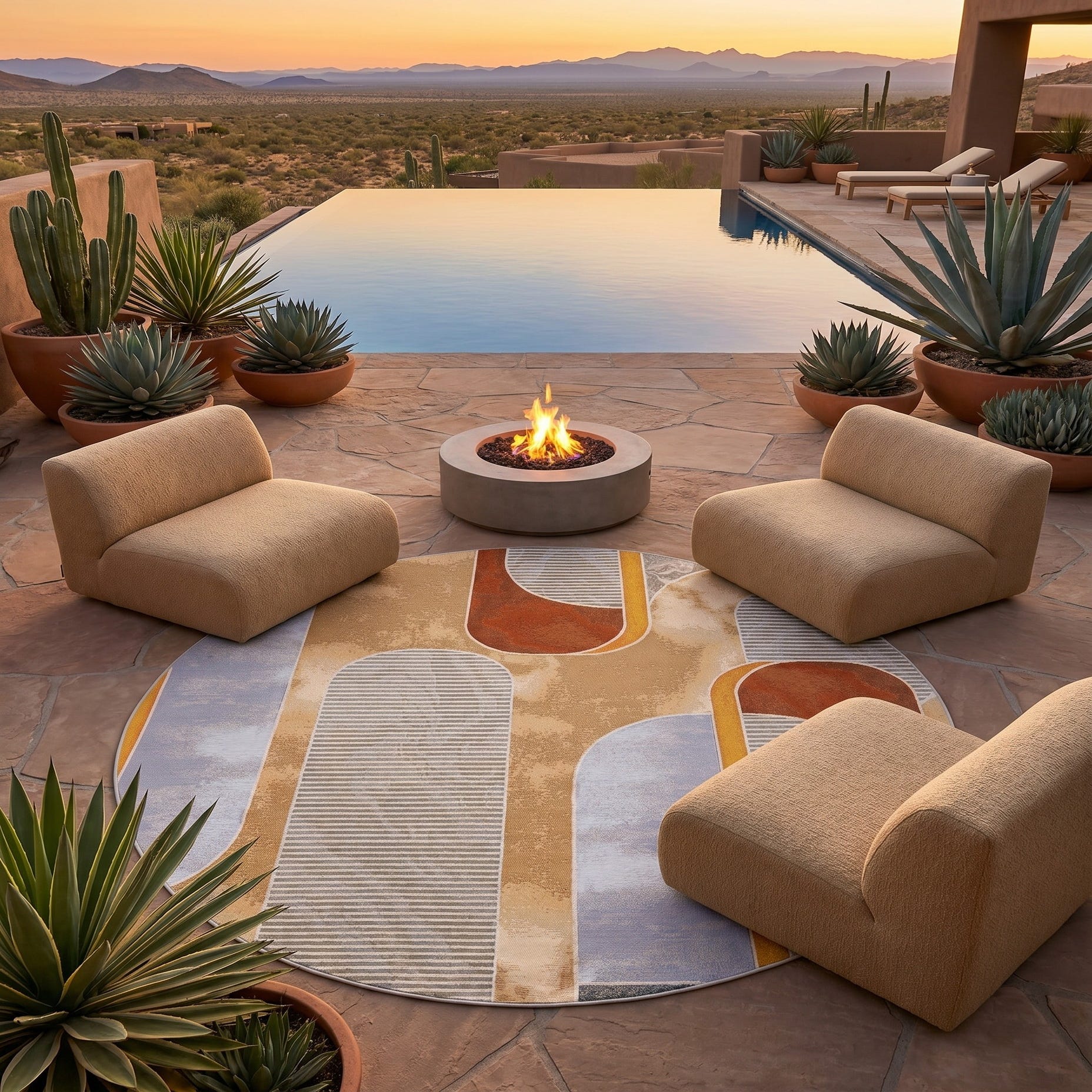 7' 10 x 7' 10 Easy-Clean Modern Indoor / Outdoor Round Rug