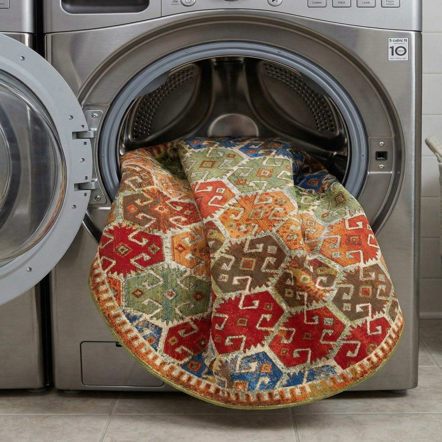 7' 10 x 7' 10 Washable Southwestern Indoor / Outdoor Round Rug