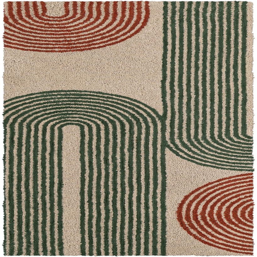 Primary color is Multi. Colors in this rug include: Multi, Beige, Green, Red.