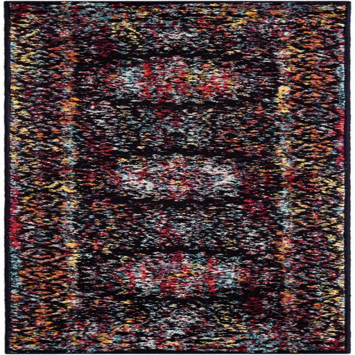 A vibrant 8 ft runner rug with a multi-colored speckled pattern on a dark background, perfect for a hallway.