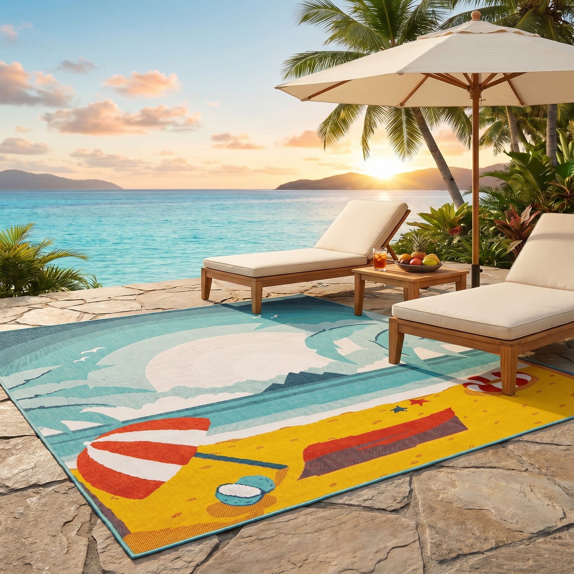 7' 10 x 7' 10 Easy-Clean Coastal Indoor / Outdoor Square Rug