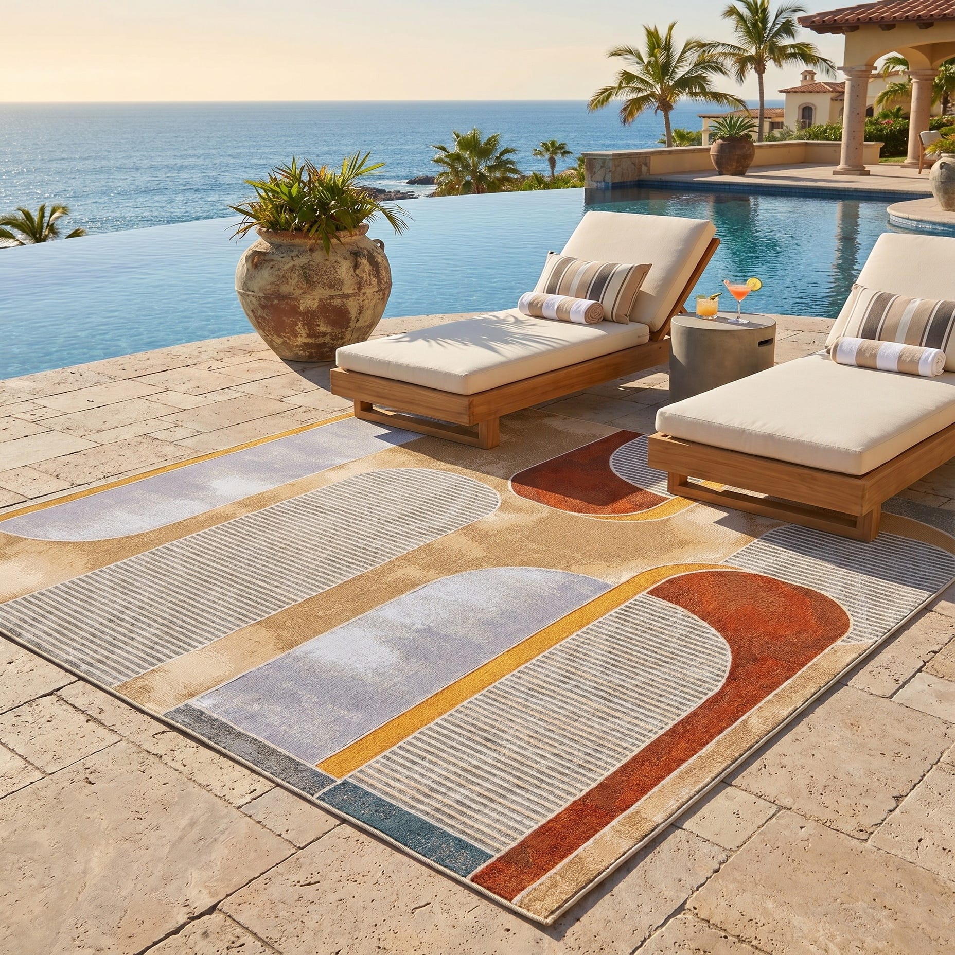 7' 10 x 7' 10 Easy-Clean Modern Indoor / Outdoor Square Rug