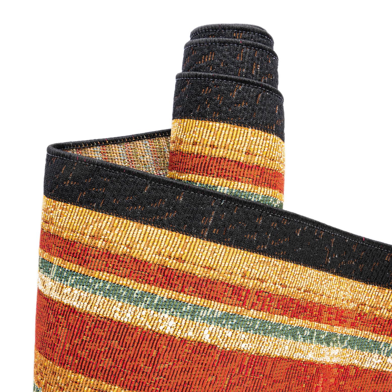 This piece works well on covered patios and sunrooms as well as contemporary living rooms and entryways. Pair it with warm wood furniture, rattan or leather seating, and black or ivory accents to echo the rug’s color story; it also anchors a modern dining set or defines an outdoor seating area with clean lines and layered textiles.