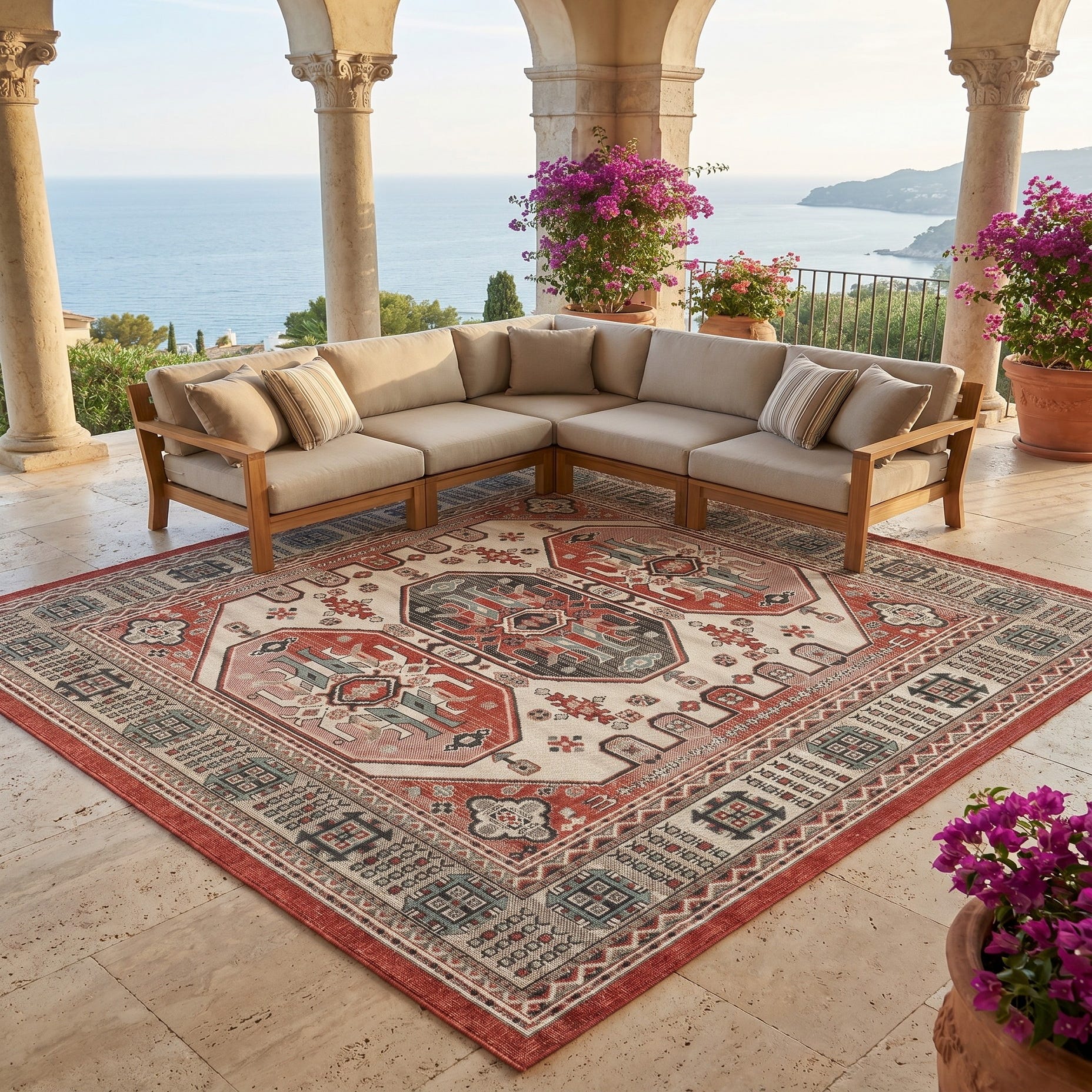7' 10 x 7' 10 Easy-Clean Traditional Indoor / Outdoor Square Rug